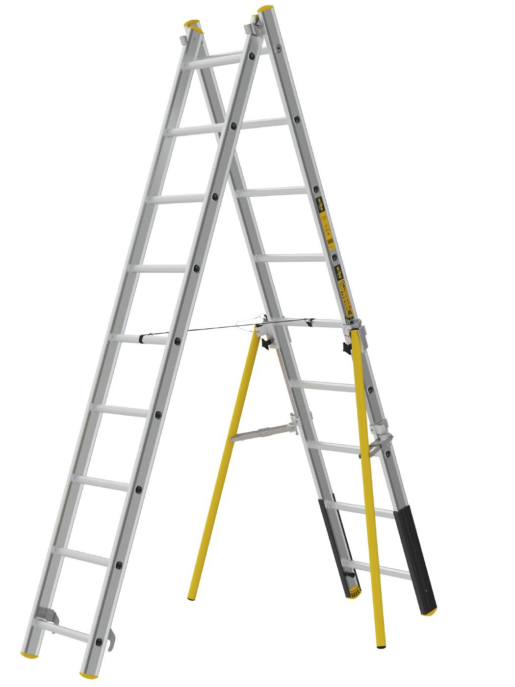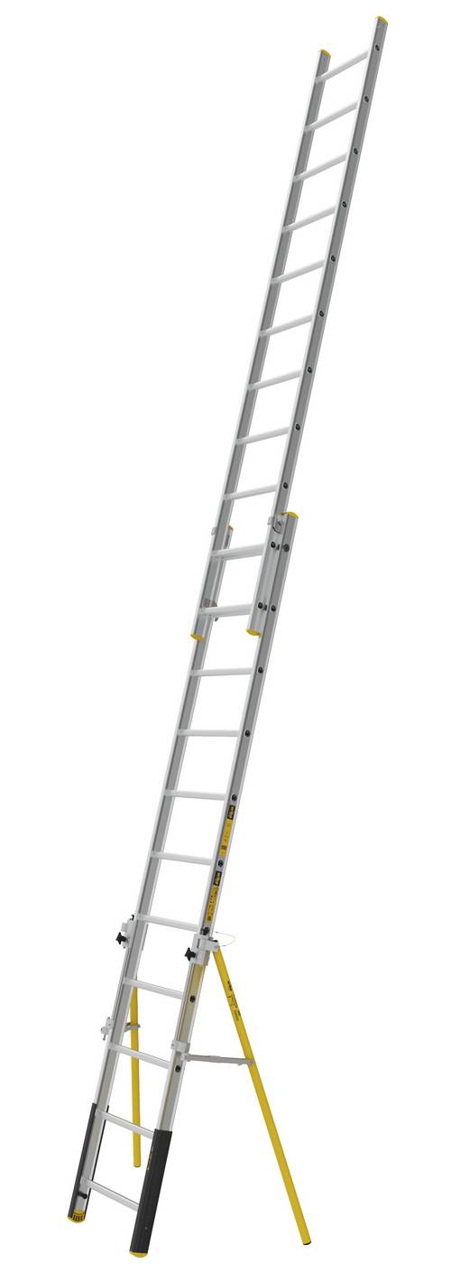Meie parim seinale toetuv redel. Redel neile, kes töötavad kõrgel ja seavad ohutuse alati esikohale. Varustatud nivootasandusjalgadega, mis hõlbustavad redeli kasutamist kaldus ja ebatasasel pinnal. Turvajalad takistavad redeli külili kukkumist ja aluspinnal libisemist. Astmed on eriti laiad, mis annavad kasutajale suurema tööulatuse palju ruumi mugavalt ja ohutult ronimiseks. Alumiiniumist tugev karpprofiil koos tugevate kinnitustega muudab astmed stabiilseks ja astmetel on kahesuunaline libisemisvastane kaitse. Ülakinnituste disain muudab lihtsaks redeli kasutamise vabalt seisvana. Automaatne lukustus muudab redeli kasutamise ohutuks. Kaheosalised teleskoopredelid on saadaval vahemikus 4 kuni 10 meetrit.