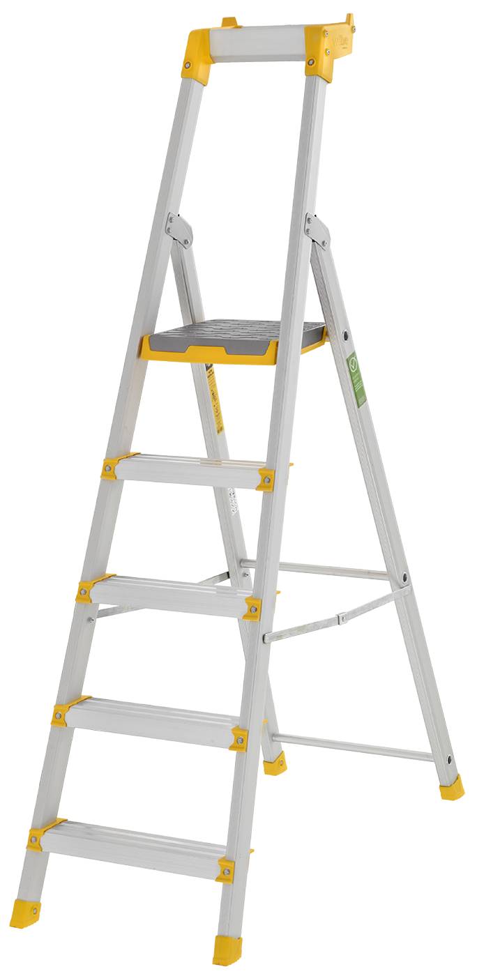 Tugev professionaalne redel, kvaliteetne igas detailis. Sobib enamikule inimestele, kes otsivad mitmekülgset ja töökindlat redelit erinevateks töödeks. Uuenduslik FDS-kruvidega kinnitustehnoloogia tagab stabiilse konstruktsiooni, minimaalselt tõrkeid ja tõeliselt pika kasutusea. „Hea töökeskkonna valik“ – heaks kiidetud kuni viie astmega redelina. Vaikselt sulguv metallist platvorm (310 x 270 mm) kahesuunalise libisemiskaitsega. Ergonoomilised redeliastmete esiservad, mis toetavad sääri, ja hõlpsasti haaratavad profiilid muudavad redelil töötamise mugavaks ja redeli hõlpsasti kaasaskantavaks. Otse külgprofiilidesse kruvitud sügav alumiiniumriiul suurendab vastupidavust. Terasest liigendid turvalisemaks kasutamiseks. Alumiiniumprofiilid on anodeeritud, et sa ei määriks käsi ega riideid.