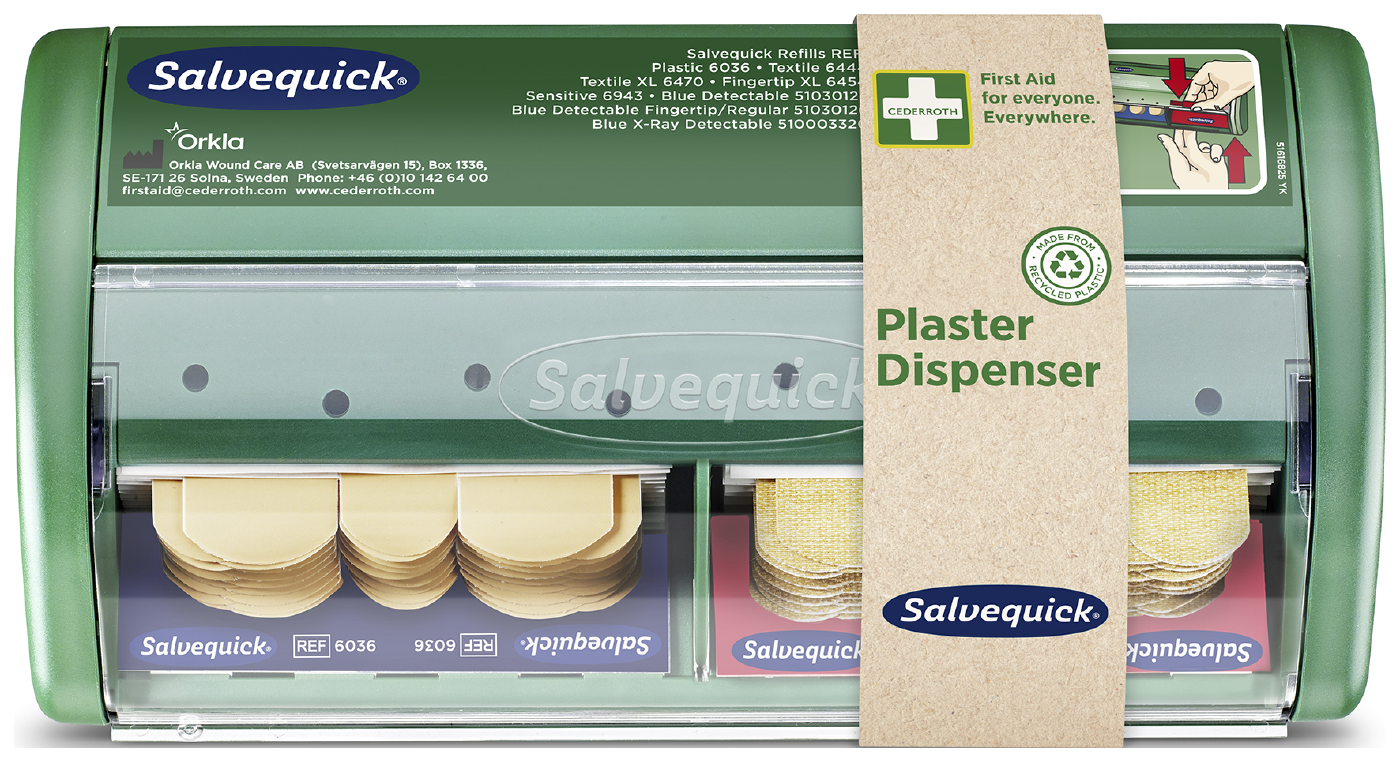 Plaastriautomaat sisaldab järgmist: 40 tekstiilplaastrit 6444 ja 45 plastplaastrit 6036. Plaastrit automaadist välja tõmmates jääb üks kinnituspindadest avatuks ja plaaster on pealepanemiseks valmis. Plaastriautomaat kinnitatakse kindlale kohale ja seda ei saa ümber paigutada. Plaastreid tõmmatakse allapoole, mis on lihtsam ja ka hügieenilisem.