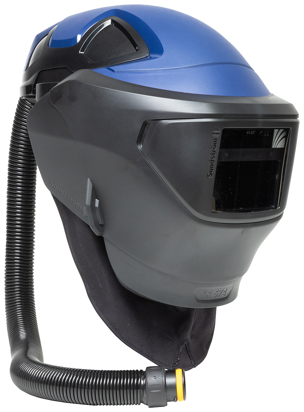 Näokate koos keevitusvisiiriga, akutoitel puhurseade SR 500 või SR 700 ja heakskiidetud filtrid kuuluvad Sundströmi puhurseadmepõhisesse hingamisteede kaitsevahendite süsteemi. Näokatte hingamisvoolik tuleb ühendada filtriga varustatud puhuri külge. Näokattes tekkiv ülerõhk takistab osakeste ja muude saasteainete sattumist hingamistsooni. Tooteid saab kasutada ka koos suruõhuseadmega SR 507. See kombinatsioon moodustab pideva õhuvooluga hingamisseadme suruõhuallikaga ühendamiseks. Vt eraldi tootelehte SR 507. Kombinatsioonid kaitsevad kahjulike gaaside/osakeste, kiirguse ja pritsmete eest keevitamise, gaaslõikamise, lihvimise ja sarnaste tööde korral. Asjakohane kujundus võimaldab tooteid kasutada töötamisel kitsastes ja raskesti ligipääsetavates kohtades. Tooteid saab kasutada filtreeriva kaitsevahendi alternatiivina igas olukorras, kus filtreeriva kaitsevahendi kasutamine on soovitatav. Selliste olukordade hulka kuuluvad esmajoones rasked, kuumas keskkonnas teostatavad või pikaajalise kestusega tööd. Enne kasutamist tuleb keevitusvisiirile paigaldada sobiva tumedusastmega keevitusklaas. Mudeli SR 574 tarnevarustuses on automaatne keevitusklaas EN 4/9-13 ja polükarbonaadist kaitseklaas. Klaas peab olema CE-märgisega ja standardses suuruses 90 x 110 mm. Tarvikuna on saadaval keevitusklaasid, automaatsed keevitusklaasid, korrigeerivad klaasid, kaela- ja rinnakaitsmed ning voolikukaitsmed. Säilivusaeg (aastates) 5 Päritoluriik Rootsi Kasutustemperatuur –10 – +55 °C, 90% õhuniiskus (RH) Hoiutemperatuur –20 – +40 °C, 90% õhuniiskus (RH) Määratud kaitsefaktor 200 (TH3) Nominaalne kaitsefaktor 500 (TH3) Tumedusaste Auto EN 4/9-13 Direktiiv nr 1 (EL) 2016/425 IKV