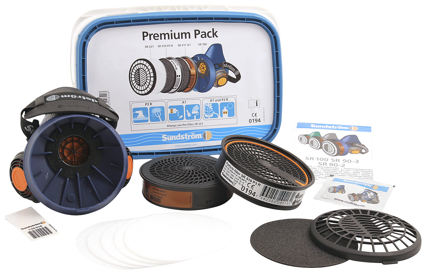 - Karbis on poolmask SR 100 M/L, osakestefilter SR 510 P3, gaasifilter SR 217 A1, 5 eelfiltrit SR 221, eelfiltri hoidik, puhastusrätik ja kasutusjuhend.