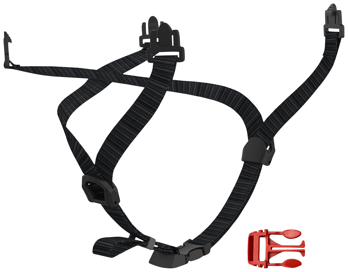 Lõuarihma tarnekomplektis on kaks sisselükatavat pannalt standardi EN 397 (must, paigaldatud) või EN 12492 (punane) nõuetele kohandamiseks.