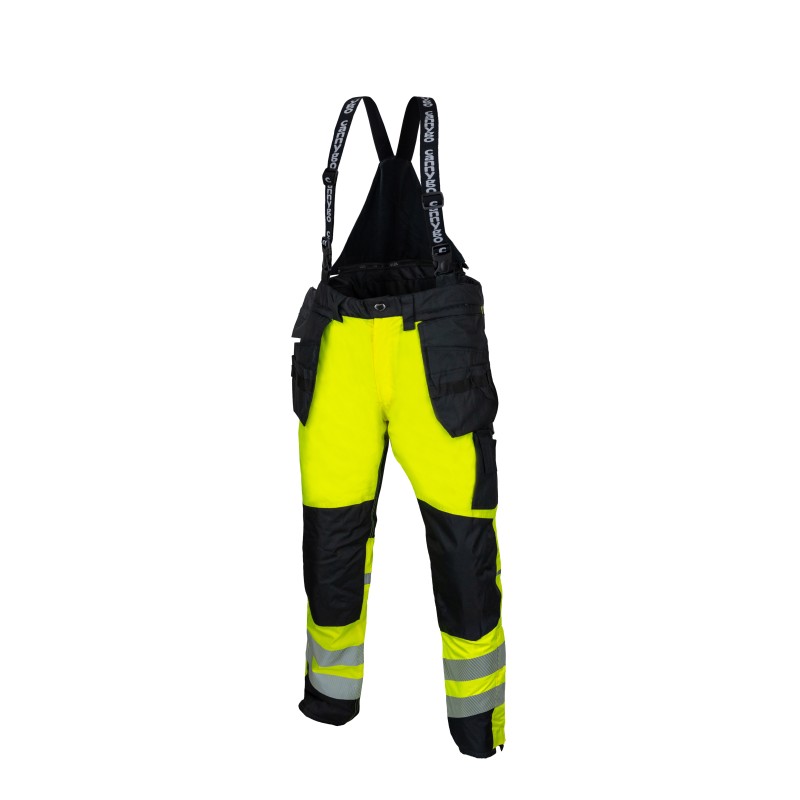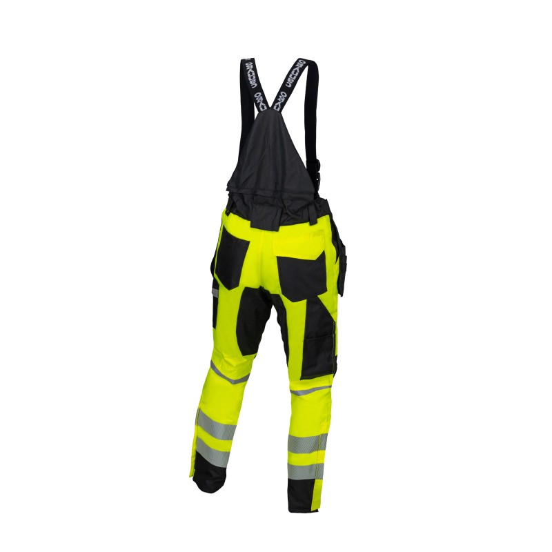 Helkurpüksid sinteponist. Suletav kaetud lukuga. Paremal küljel on mahukas tasku. Vasakul küljel on neljast osast koosnev tasku ja tööriistade aas. Kaks sektsiooni on kinnitatud takjapaelaga, ülejäänud kaks on avatud. Ees on kaks eemaldatavat taskut. Pükste tagaküljel on tepitud tekstiilkummi, mis võimaldab kasutajal rõivaesemega alati mugavalt tunda. Pikendatud seljaosa. Traksid on võimalik eemaldada. Pükste allosas on kaks lukku, mis aitavad reguleerida. Lina on valmistatud 100% polüestrist, millel on CannyGo logod. Poolkombineeritud tsoonis on kaks paralleelset kvaliteetset 60 mm helkurriba. Tagumistel taskutel on täiendavad helkurelemendid. Sääre alumine osa ja kõige määrdunumad kohad on valmistatud tumedast riidest.