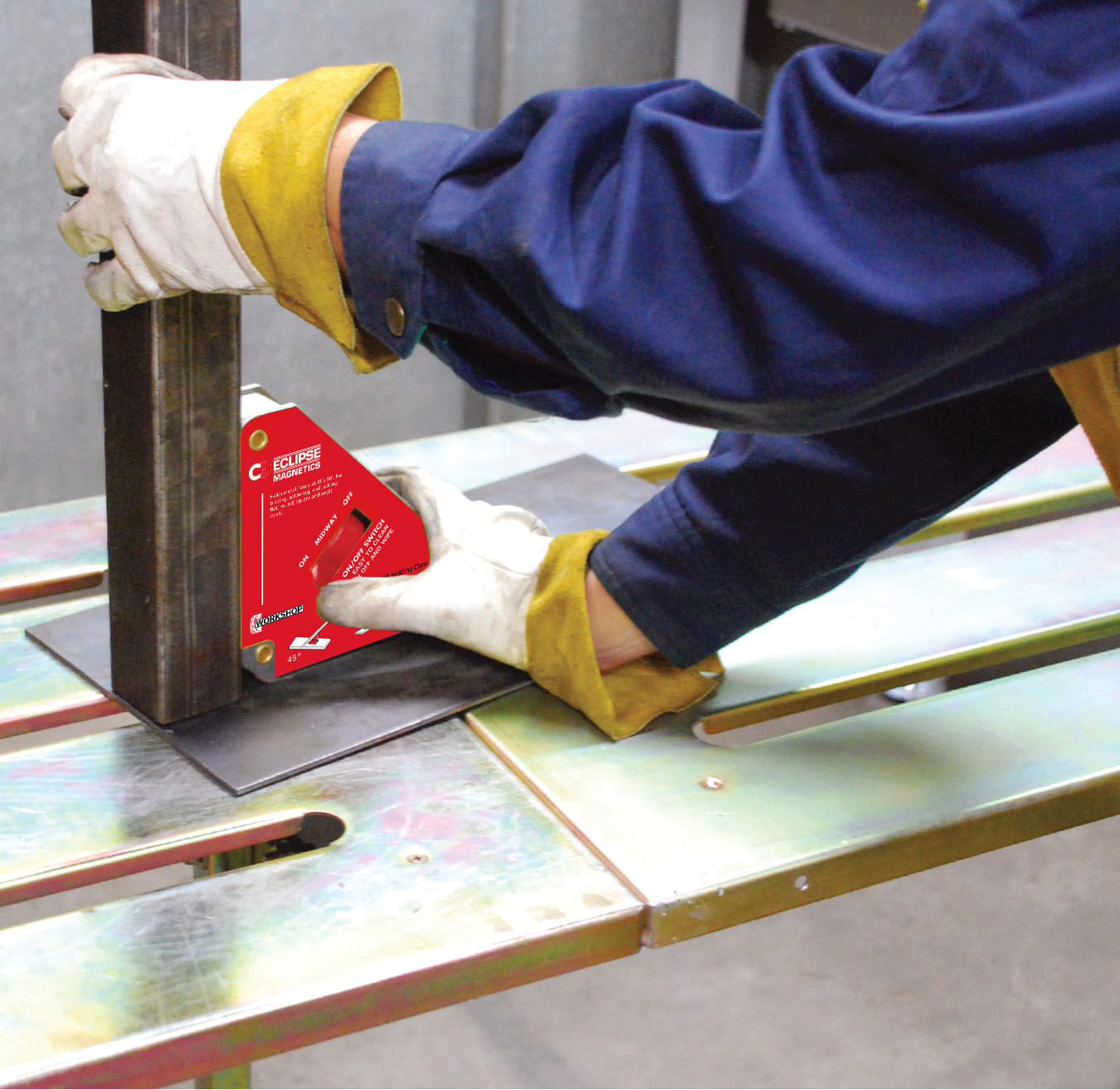 Robustne tugev suure tõmbejõuga keevitusmagnet paigaldus- ja keevitustöödeks 45° ja 90° nurga all. Varustatud ümberlülitiga, millel on kolm asendit – Väljas, Midway ja Sees. Need funktsioonid hõlbustavad toorikute fikseerimist. Toorikute paigaldamise ajal on lüliti asendis Väljas või Midway, töötlemise ajaks viiakse lüliti asendisse Sees. Suurepärane abivahend näiteks lattraua, aga ka ümar- ja nelikanttoru keevitamisel. NB: Kasuta magneteid ainult joondamise ja fikseerimise ajal ning eemalda need enne keevitamist. Väldi toote kuumutamist üle 180°C. Ei vaja hooldust ning on lihtsalt puhastatav.