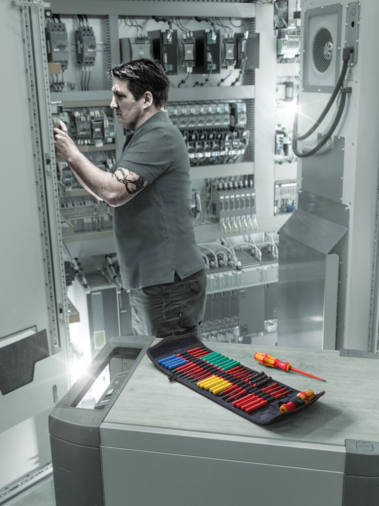 26-osaline Kraftform Kompakt VDE komplekt, 2 x käepide 817 VDE Kraftform, 24 x VDE varras (kõik pikkusega 157 mm), enamik vähendatud läbimõõduga (iS), et küündida ka sügaval asuvate kruvide ja vedrudeni. Testitud ükshaaval standardi IEC 60900 kohaselt 10 000 V pingega, et tagada ohutu töö heakskiidetud pingel 1000 V. „Take it easy“ tuvastussüsteem profiili värvikoodide ja lasergraveeritud suurusemärgistusega vajaliku tööriista kiiresti ja lihtsalt leidmiseks. Kraftform Plus käepide mugavaks ergonoomiliseks kruvide keeramiseks villide ja nahapaksendite tekkimise ohuta. Käepideme kõvad osad aitavad kiiremini töötada ja pehmed osad tagavad jõumomendi ülekande. Veeremisvastane kuju takistab otsakute tüütut veeremist töökohas.