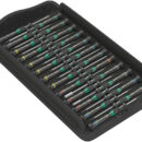 Mehaaniliste kruviühenduste jaoks sobiv Wera Micro kruvits. Kätt toetav pöörlev kork ja selle all olev kiire pöördosa võimaldavad välkkiiret keeramist. Kaob vajadus aeganõudva kätevahetuse järele. Hoiustamine ja transport tugevas rullitavas kotis, et õige tööriist oleks alati käepärast. „Take it easy“ tuvastussüsteem: profiilile vastavad värvikoodid ja suurusemärgistus.