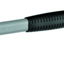 Väga tugev ja vastupidav terastorust käepide. Lõhenemis-, purunemis- ja kulumiskindlad polüamiidist pead. Kõvadus 75 Shore D, katsetatud –20 °C juures. Pulbervärvitud hõbedase vasaravärviga.