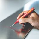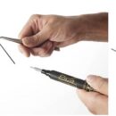 K.a Tuššipliiats peente sügavate avade märgistamiseks. Roostevabast terasest otsaku läbimõõt on vaid 1.5 mm ja see mahub hästi näiteks konsoolide kruviavadesse. Pliiatsi korpus on üleni plastist ja see ei juhi elektrit. Kõikide kuivade pindade püsivaks märgistamiseks. Otsakattel on rihmaklamber, millega saab vöö või tööriistatasku külge kinnitada. Vajadusel saab värvi maha pesta alkoholiga või muu sarnase lahustiga. Kui pliiatsiots on kuivanud, lükka kate pliiatsile ja pliiatsiots taastub paari päevaga. Kui ots muutub tömbiks, lõika selle otsast millimeetri jagu maha ja pliiats on jälle nagu uus. Seda saad teha korduvalt, kuna südamik on teleskoobina väljatõmmatav. Samuti võid kogu südamiku välja tõmmata, 180° pöörata ja teist otsa pidi pliiatsisse tagasi torgata.