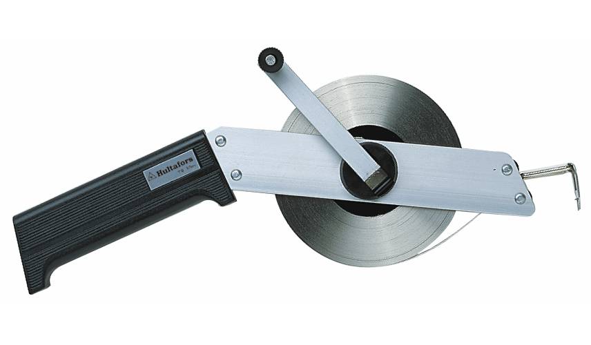 Tüüp TR. Sügavale söövitatud skaalaga roostevabast terasest mõõdulint alumiiniumist raamis. Mahapööratav otsahaak.