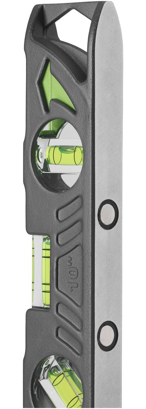 Valualumiiniumist torpeedovesilood. Kolm kvaliteetset libelli: horisontaalne, vertikaalne (peegeldavad) ja 45-kraadine. Valmistatud löögikindlast materjalist. mis talub hästi UV-kiirgust. Sile freesitud põhi magnetiga. Ülemisel küljel V-soon. Ava kukkumiskaitse kinnitamiseks.