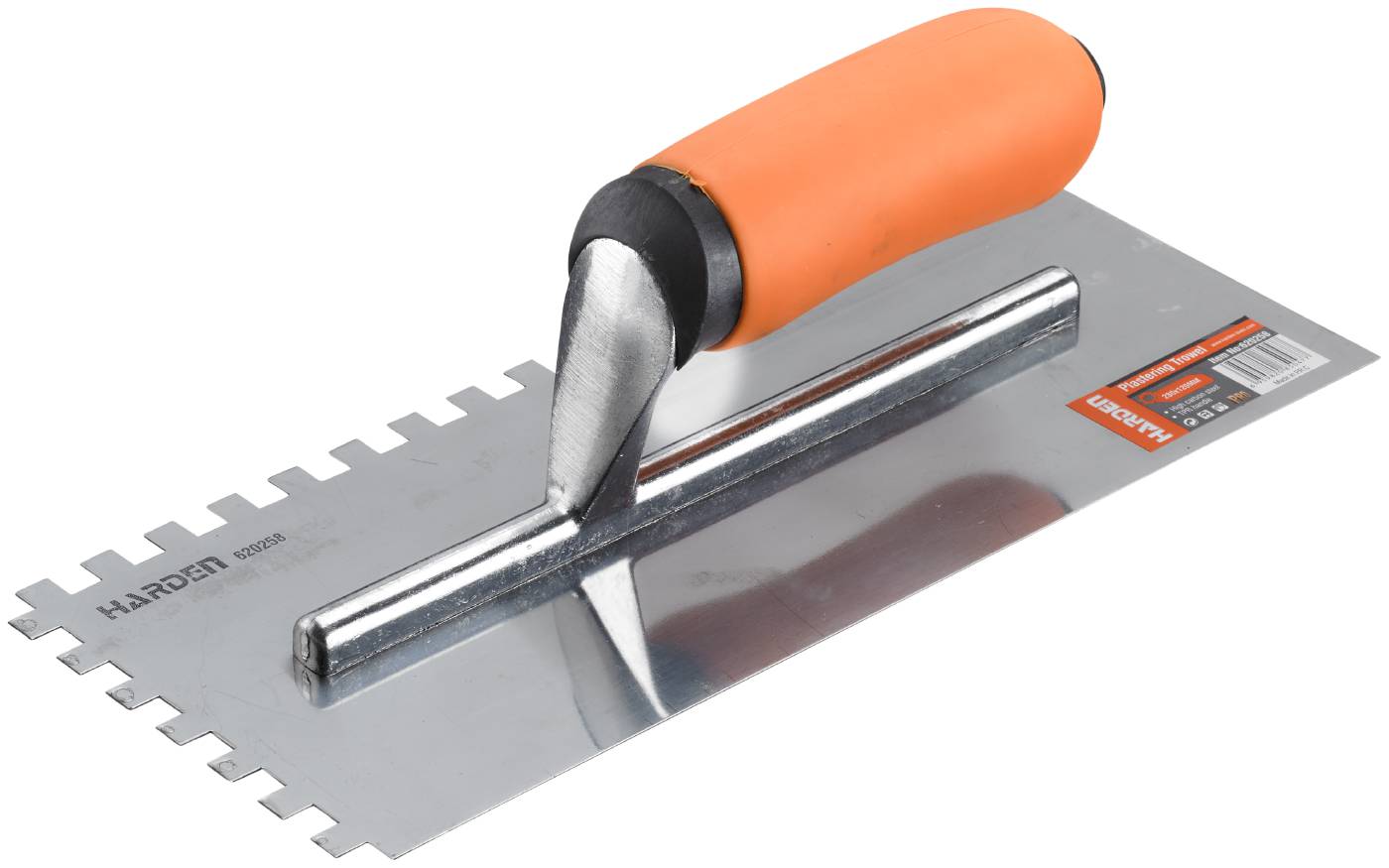 Hammaspahtlilabidas, millel on kahel küljel täisnurksed hambad 8×8 mm. Kindlalt haaratav kahekomponentne kummikattega plastkäepide.