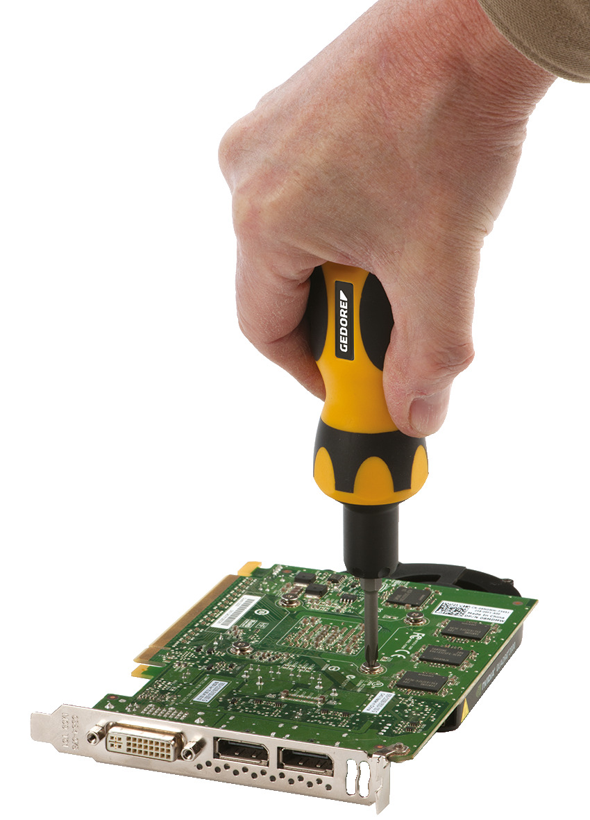 Kasutamine: kruvide kontrollitud pingutamine vahemikus 0,05–0,25 Nm. Järjestikune paigaldus ühtlase pingutusmomendiga. Elektroonikatööstus, täppismehaanika ja tööstustootmine. Omadused: eelseadistatud momendiga kruvikeeraja – ilma skaalata. Sisemine 1/4″ kuuskantühendus kasutamiseks standardile DIN 3126 (C 6.3) vastavate 1/4″ kuuskantotsakutega. Standardi DIN EN ISO 6789:2003 järgi II tüübi klass F, kontrollitava tehasetõendiga. Kalibreeritud lubatud kõrvalekaldega +/– 6% seadistatud momendist. Vastab elektrostaatilise lahenduse eest kaitstud ala (Electrostatic Protected Area, EPA) nõuetele, kasutamiseks elektrostaatiliste lahenduste suhtes tundlikel töödel. Täpne pöörlev kuulliigend kontrollitud kahesuunaliseks keeramiseks. Täppismehhanism hakkab eelseadistatud väärtuse saavutamisel selgelt tuntavalt libisema. Automaatne lähtestamine algasendisse. Väsimusevaba töö tänu ergonoomilisele käepidemele ja tööriista sujuvale lähtestamisele. Spetsiaalselt selleks ettenähtud otsale saab hõlpsasti panna kalibreerimiskleepse. Eelseadistus võib olla tehtud tehases või kasutaja poolt sobivat momenditestrit kasutades. Kui soovid tehases fikseeritud seadistust, märgi tellimisel soovitud Nm väärtus (küsi hinda). Tarnekomplekt: momentkruvikeeraja ESD FH. Mudelitel 4.5 ja 13.5 on kasutamise hõlbustamiseks täiendav eemaldatav T-käepide. Standardile DIN EN ISO 6789 vastav katsesertifikaat. Tarnitakse tugevas pappkarbis.