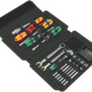 Kompaktne tööriistakomplekt 25 kõige olulisema kruvikeeramistööriistaga torustike ja küttesüsteemide jaoks. Komplektis on 2 x lehtvõti JOKER, ¼″ narre Zyklop ja tarvikud, 6 x 89 mm otsak, 5 x mitmekomponentne Kraftform Plus kruvits ning ühepooluseline pingeindikaator. 2 x lehtsilmusnarrevõti JOKER spetsiaalse hoideplaadiga kruvi libisemise/kadumise vältimiseks ja suurema jõu edastamiseks; 1 x narre Zyklop 8000 A (1/4″) kiireks ja jõuliseks tööks; 3 x padrun Zyklop 8790 HMA käsi- ja elektritööriistadele; 1 x adapter Zyklop 8784 A1 otsakutele; 6 x TORX® 867/4 HF hoidmisfunktsiooniga otsak – TORX®-kruvide turvaliseks kandmiseks ilma neid kaotamata (Wera 867/4 TX HF otsakud sobivad Würth ASSY kruvidele ja Altenloh SPAX T-STAR plus kruvidele); 1 x ühepooluseline pingeindikaator 247; 2 x Kraftform seeria 100 lapikkruvits 160 i ja 160 iS – ohutuks tööks kuni 1000 voldi juures (160 iS on väiksema varre läbimõõdu ja integreeritud kaitseisolatsiooniga, mis võimaldab küündida sügaval asuvate kruvide ja vedrudeni); 1 x Kraftform peitelkruvits 932 A (lapik) läbi käepideme ulatuva kuuskantvarda ja integreeritud löögikorgiga – kruvide keeramiseks ja lihtsamaks peiteldamiseks; 2 x õõnsa varrega padrunkruvits 395 HO – pikkadel poltidel olevate kruvide kinni- või lahtikeeramiseks ja kinnijäänud kruvide vabastamiseks. „Take it easy“ tuvastussüsteemi profiili värvikoodid ja suurusemärgistus võimaldavad vajaliku tööriista lihtsalt ja kiiresti leida.