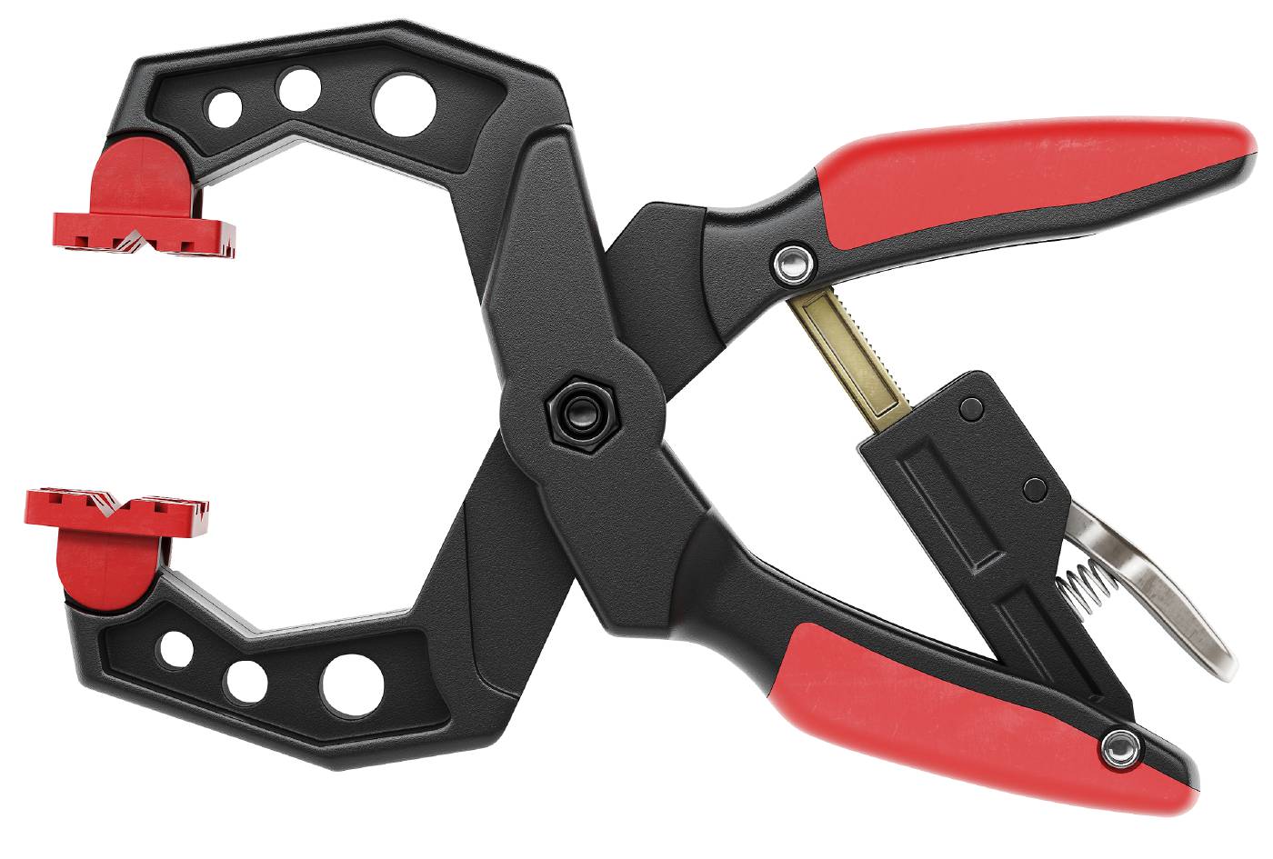 Ühe käe pitsklamber, mille põrkmehhanism võimaldab rakendada erinevaid survejõudusid. Klaasfiibriga armeeritud nailonist. Kahekomponentsest plastist käepidemed. Lainelised plastist survepinnad. Liigendiga surveklotsid ja libisemiskindlad käepidemed.