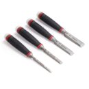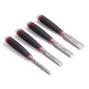 Komplektis on neli teravat vastupidavat peitli, mis sobivad jõudu ja täpsust nõudvateks töödeks. Terad on lihvitud 25° nurga all, et tagada vastupidavuse ja teravuse parim suhe. Kaasas on nutikad tuped, mille saad hõlpsalt kinnitada vööle või tööriie nööbi külge. Käepidemel on löögikindlast nailonist otsakate, mis on optimeeritud nii ülekantava jõu kui täpsuse tagamiseks.
