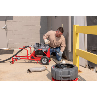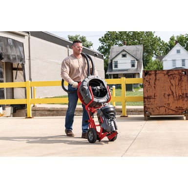Transportkäru on spetsiaalselt ette nähtud kanalisatsioonipuhastajale RIDGID K-5208 Trepifunktsioon hõlbustab trepist üles ja alla sõitmist. Kanalisatsioonipuhastajaga töö alustamiseks aseta käru horisontaalasendisse ja klõpsa kinni rattafiksaator. Autos transpordi ajal ning töökojas seistes võib käru horisontaal- või vertikaalasendis olla.