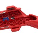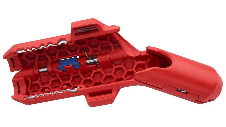 Innovatiivne ergonoomiline käepide lihtsustab isolatsiooni sisselõikamist, lahtirebimist ja pikilõiget. Eemaldab kiiresti ja täpselt isolatsiooni tavalisematelt ümar- ja niiskuskindlatelt kaablitelt (näiteks NYM-kaabel 3 x 1.5 mm² kuni 5 x 2.5 mm²), andmekaablitelt (näiteks paariti kokkukeerutatud soontega) ja koaksiaalkaablitelt. Isolatsioonieemaldusseade ristlõigetele 0.2 / 0.3 / 0.8 / 1.5 / 2.5 / 4 mm². Tänu avamisabile saab koaksiaal- ja andmekaableid mugavamalt paigutada. 16 95 02 on vasakukäelistele.