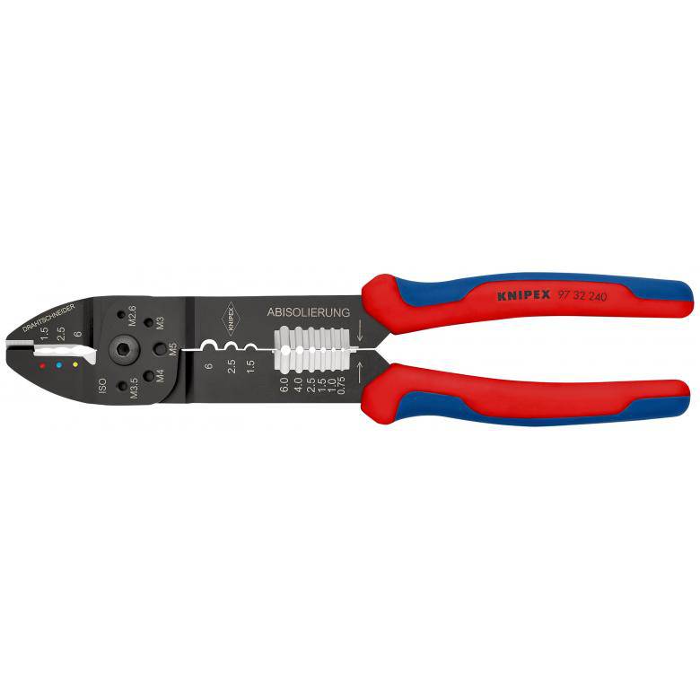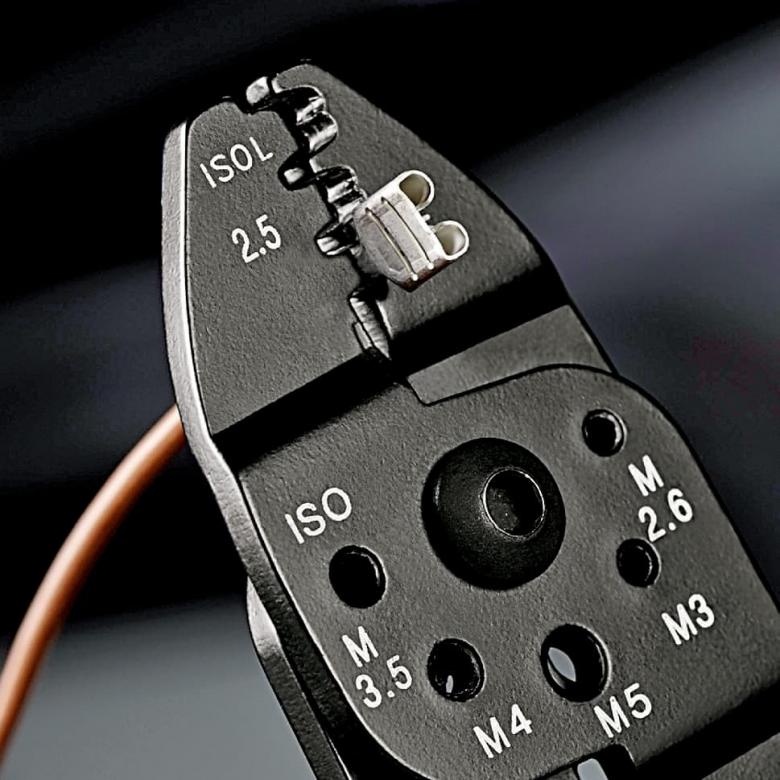 Kaablite lõikamiseks ja koorimiseks, isoleeritud ja isoleerimata hülsside ning pistikute pressimiseks. Keermestatud avad vask- ja messingkruvide lõikamiseks. M 2.6 / M 3 / M 3.5 / M 4 ja M 5. Kõrge stabiilsuse ja sujuva töö tagab poltühendusega liigend. Kõrgtugevast eriterasest.