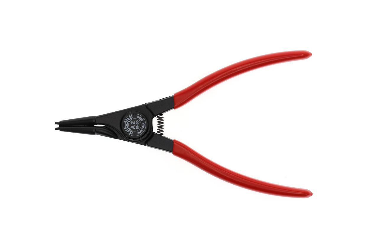 Standardi DIN 471, DIN 983 kohastele lukustusrõngastele. Standardi DIN 5254 kohane tüüp A. Sirged mokad. Avamisvedru. Klambrikaitse. Valmistatud GEDORE spetsiaalse karastusega kroomvanaadiumterasest. Täpselt masintöödeldud, õliga karastatud ja noolutatud. Must, siniste sukelvormitud käepidemetega.
