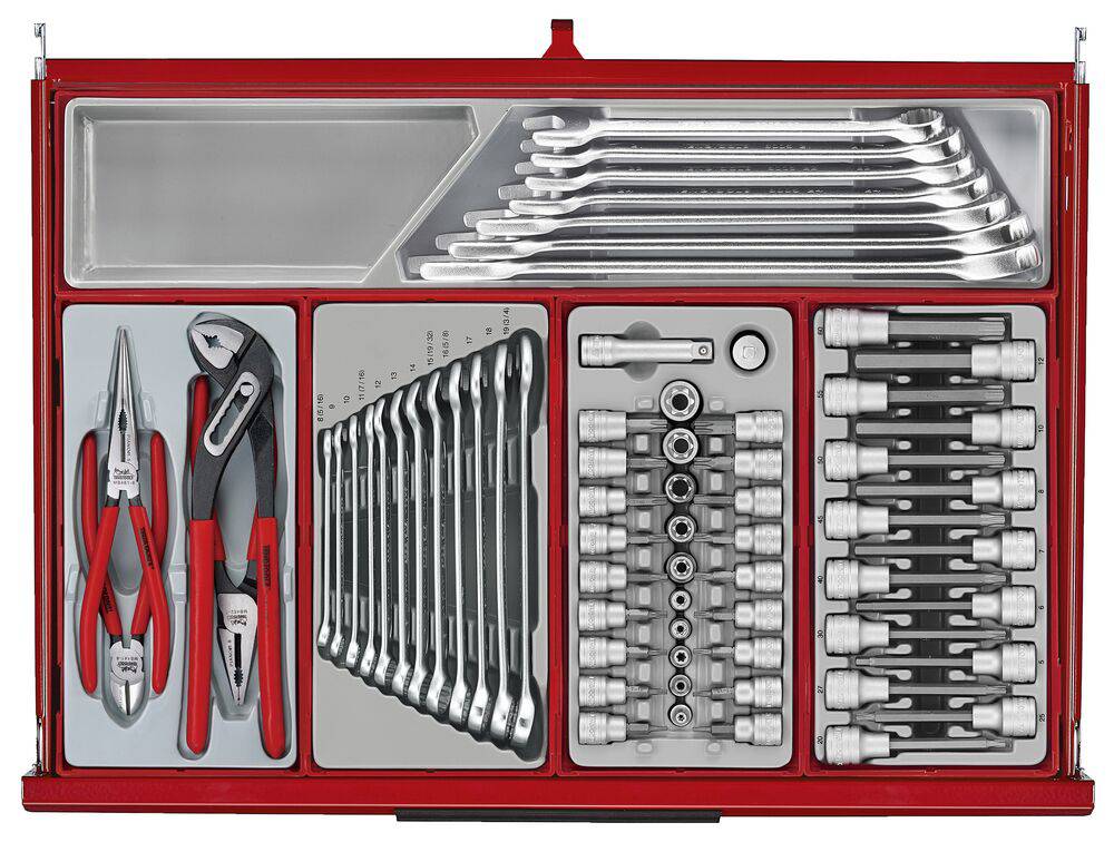 282-osaline tööriistakomplekt mattpunases tööriistakärus kasutamiseks proffidele tööstuses. Seitse 30 kg kandevõimega sahtlit. Kolmeastmelised kuuljuhikud ja EVA-plastist põhjakaitsed. Kõrgtugevast terasest 3-osaline tööriistakäru. Läbinud fosfaadivaba 5-astmelise roostetõrjetöötluse ja kaetud pulbervärviga. Viietollised rattad ja mugav käepide lihtsaks teisaldamiseks. TengToolsi tööriistade hoiusüsteem muudab tööriistad kergesti leitavateks.