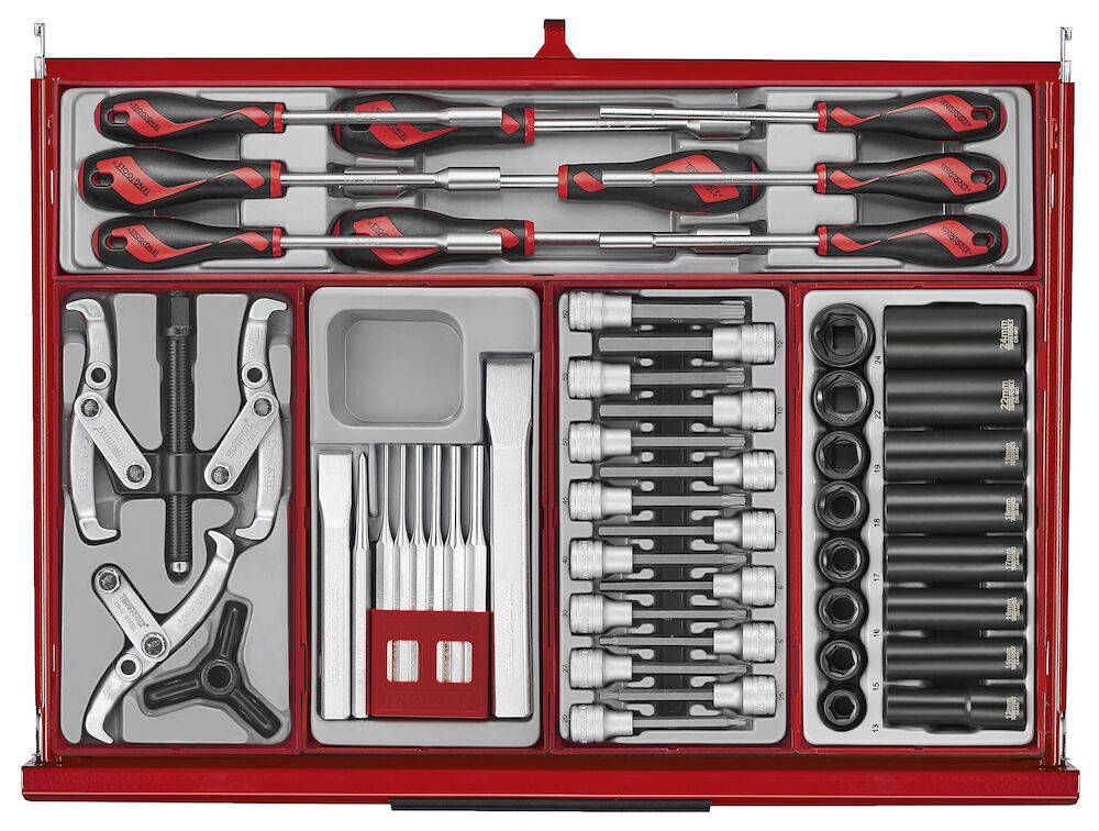 TengTools TKW26R628T on 628-osaline tööriistakomplekt 26″ tööriistakärus ja mis sobib ideaalselt tööstuslikule kasutajale. Kõik seitse sahtlit on 30 kg kandevõimega ning varustatud kolmeastmeliste kuuljuhikute ja EVA-vahtplastit põhjamattidega. Kvaliteetterasest kolmeosaline korpus. Läbinud viieastmelise fosfaadivaba roostekaitsetöötluse ja kaetud pulbervärviga. Viietollised rattad ja mugav käepide. Tänu TengTooolsi tööriistade hoiusüsteemile on tööriistad hästi hoitud ja lihtsalt leitavad.
