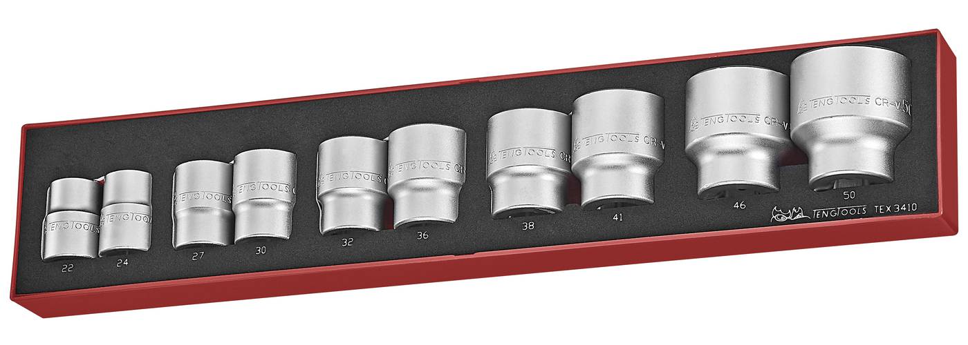 10osaline padrunikomplekt. 3/4″ nelikantkinnitusega. Teng Tools TEX3410