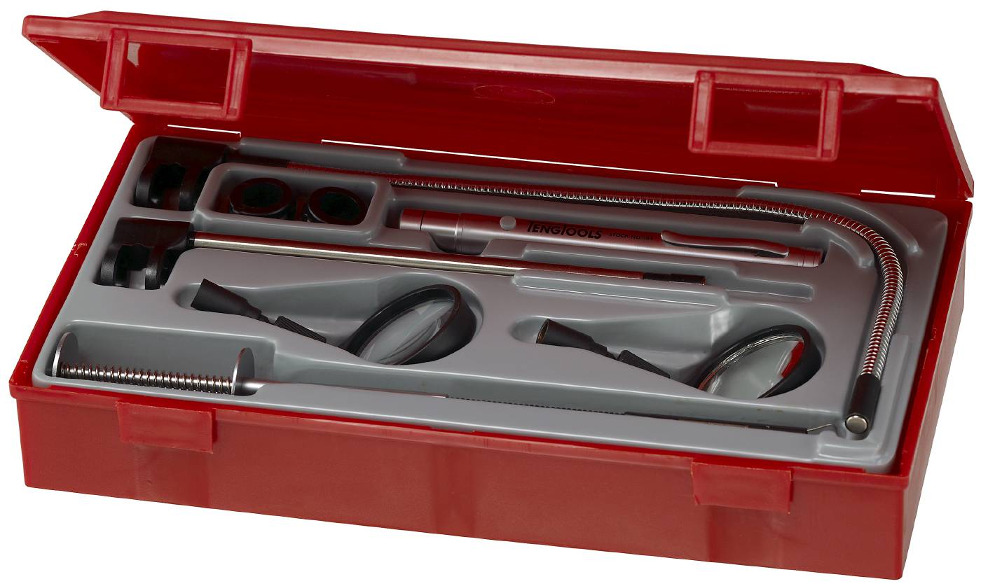 [Painduv magnetotsija, Teleskoopvarrega magnetotsija, 38 mm, Magnetkinnitusega luup 1:3, Magnetkinnitusega vaatluspeegel 38 mm, Painduv haarats, Lamp kahe AAA patareiga]