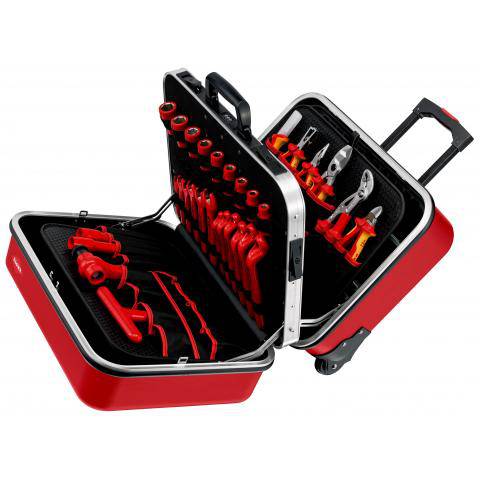Punasest vastupidavast ABS-plastist kohver paljude Knipexi tööriistadega, mis on DIN EN/IEC 60900 järgi katsetatud. Kohvril on teleskoopkäepide ja kaks kergekäigulist ratast. Kõigis avanemisasendites vabalt seisev tänu mõlemal küljel olevatele kaanefiksaatoritele.Vabalt reguleeritav avamisnurk. Saab avada ühelt või mõlemalt küljelt. Kumbagi kaant saab avada teineteisest sõltumatult.