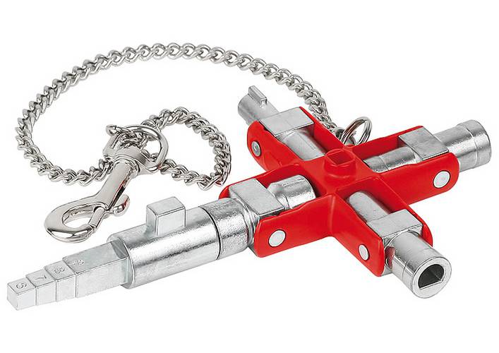 Universaalvõti tavalisematele lukkudele elektri-, gaasi- ja veevarustusele, kliima- ja ventilatsiooniseadmetele, tööstusele jm. Kokku 9 erinevat tsingisulamist võtmeprofiili. Varustatud äravõetava keti ja karabiinkonksuga. Tsingisulamist valatud. 172960205 – “Ehitaja” variant, mis on varustatud lisaks magnetkinnitusega neljaastmelise nelikanttapiga. Kaasas magnetiga adapter 1/4″ kinnitusega otsakutele. 172960304 – Universaalne võti nelja erineva pööratava peaga, millest kolm on topeltfunktsiooniga.