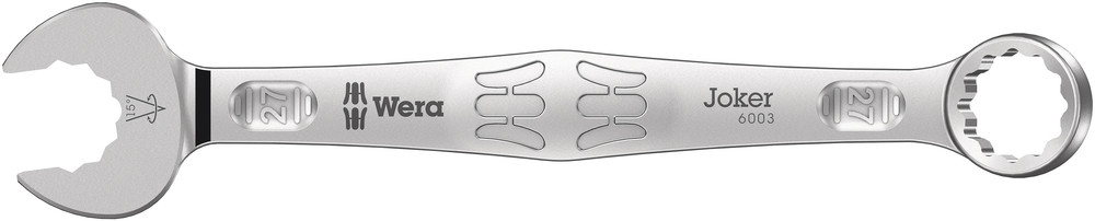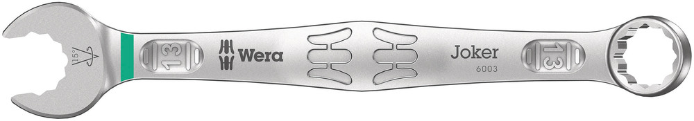 Kuna paigaldusruumid muutuvad järjest kitsamaks, vajavad kasutajad tööriistu, millega saab töötada ka sellistes tingimustes. Kitsastes kohtades peab tööriistal olema rohkem paigutuspunkte. Kas mutrivõtmete paigutusvõimalusi saab suurendada? Lahtise otsa 7,5° nihe koos kahekordse kuusnurga geomeetriaga kahekordistab paigutuspunktide arvu. Võtme korduv 180° keeramine ümber pikitelje annab neli paigutusvõimalust ning poltidest või kruvipeadest saab kinni võtta iga 15° järel. Joker 6003 lahtise otsa nutikas geomeetria suurendab oluliselt kasutusvõimalusi kitsastes kohtades. Joker 6003 leiab iga keeramise järel automaatselt vastava paigutuspunkti. Õhuke ja tugev silmusots on tööriista telje suhtes 15° kaldu. Kvaliteetse pinnatöötlusega on saavutatud tõhus ja kauakestev korrosioonikaitse. „Take it easy“ tuvastussüsteem: suurusele vastavad värvikoodid.