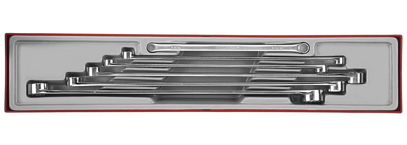 Silmusvõtmekomplekt 6 eriti pika lameda võtmega. Kummaski otsas eri mõõdus 12-kant. Kroomvanaadiumterasest. Mattkroomitud. Tarnitakse karbis, mis sobib Teng Tools tööriistakastidesse ja tööriistakärudesse.