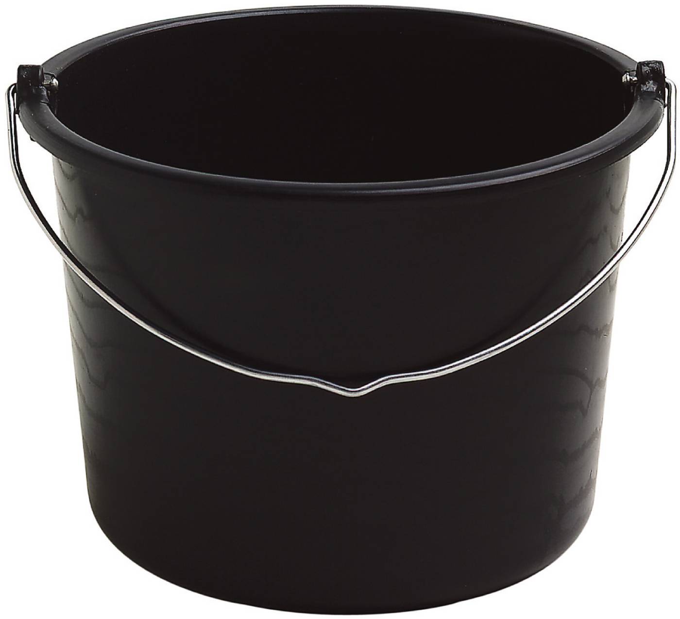 Tugev ämber mustast taaskasutatud plastist. Metallist sangaga. Mõõdumärkidega.