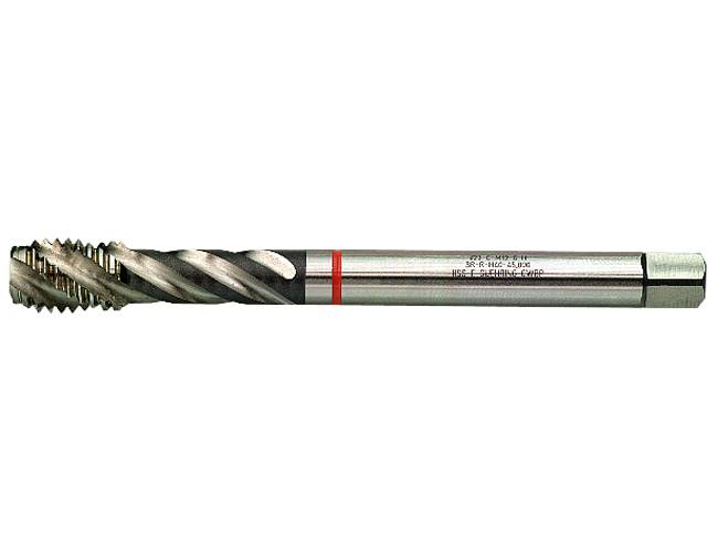 823. Materjaliga sobitatud keermepuur. (Punane) legeeritud terasele, tööriistaterasele, noolutatud terasele üle 1000 N/mm². Parema käe spiraalsoon toob laastud välja materjali pinnale. Umbavade keermestamiseks. Spiraalinurk 40°.
