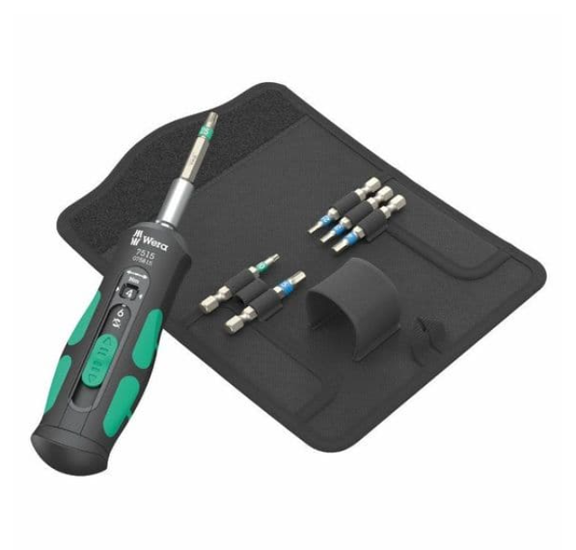 7-osaline tööriistakomplekt. Professionaalseks kruvide keeramiseks/peenreguleerimiseks ja kontrollitud momendiga keeramiseks. Turvaline peale libistatav momendimehhanism kiiresti valitava päri-/vastupäeva suuna, viie pingutusmomendi (2,0; 3,0; 4,0; 5,0; 6,0 Nm) ja ühe piiramatuid lahtikeeramis- ja pingutusmomente võimaldava fikseeritud asendiga (Torque Lock). Kiirelt vabastatav hoidik tagab suure tugevuse. Ideaalne jalgrattatöödeks. Sobib välise 1/4″ kuuskantühendusega otsakutele. 6 tugevat otsakut (pikkus 50 mm); otsakute profiili ja suurust on lihtne näha tänu Wera „Take it easy“ tuvastussüsteemi värvikoodidele ja märgistusele.