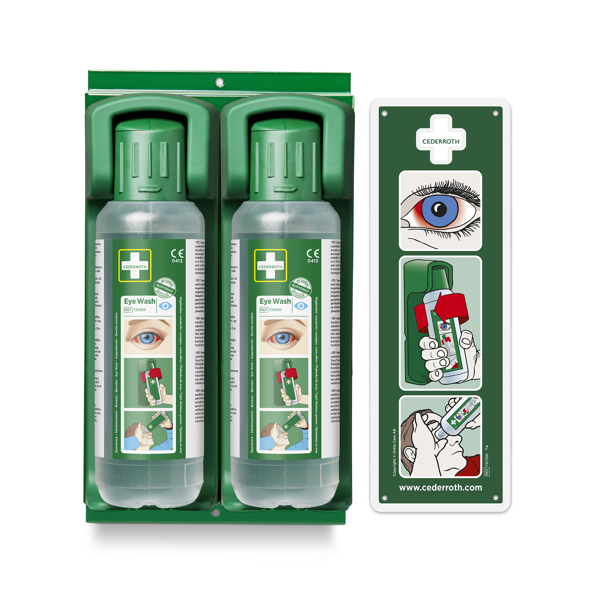 Praktiline seinahoidik Cederroth silmaloputuspudelitele (tellimiskood 725200&CEDER). Kasutades seinahoidikut on alati teada, kus silmaloputuspudelid täpselt asuvad.