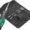 7-osaline tööriistakomplekt. Professionaalseks kruvide keeramiseks/peenreguleerimiseks ja kontrollitud momendiga keeramiseks. Turvaline peale libistatav momendimehhanism kiiresti valitava päri-/vastupäeva suuna, viie pingutusmomendi (2,0; 3,0; 4,0; 5,0; 6,0 Nm) ja ühe piiramatuid lahtikeeramis- ja pingutusmomente võimaldava fikseeritud asendiga (Torque Lock). Kiirelt vabastatav hoidik tagab suure tugevuse. Ideaalne jalgrattatöödeks. Sobib välise 1/4″ kuuskantühendusega otsakutele. 6 tugevat otsakut (pikkus 50 mm); otsakute profiili ja suurust on lihtne näha tänu Wera „Take it easy“ tuvastussüsteemi värvikoodidele ja märgistusele.