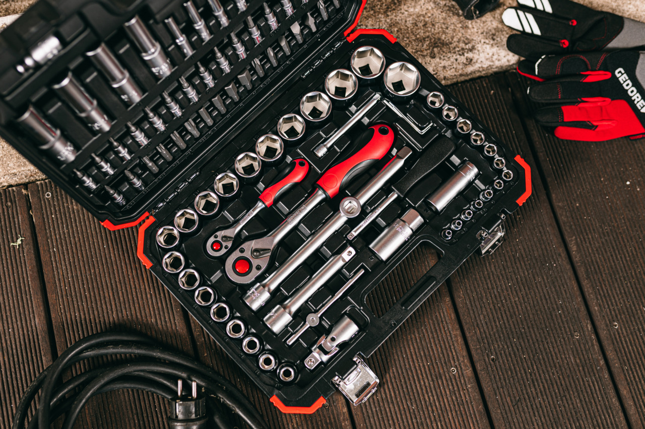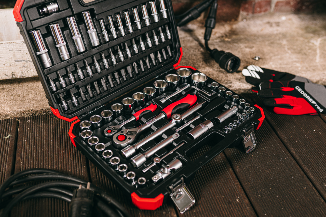 Standardile DIN 3120, ISO 1174 vastav liigend, kuulkinnitusega. Standardile DIN 3120, ISO 1174 vastav nelikantühendus, kuulisoonega. 2C pööratav narre, parema ja vasaku käe suunavahetushoob, vabastusnupp, tihe hammastus, ovaalne pea, kahest materjalist käepide, käesõbralik jõuedastus, padrunitele. 1/4″ nelikant-siseotsaga käepide, ühekomponentne käepide neljakandilise siseotsaga. 1/4″ + 1/2″ padrun, kuuskant, meetermõõdustik, lühike, vastab standardile DIN 3124, ISO 2725. 1/4″ + 1/2″ padrun, kuuskant, meetermõõdustik, pikk, vastab standardile DIN 3124, ISO 2725. 1/2″ süüteküünlapadrun pressitud hoidekummiga. 1/2″ süüteküünlapadrun pressitud hoidekummi ja täiendava kuuskantühendusega, suurus 24. Padrunotsak 1/4″, kuuskantkruvidele, pressitud fosfaatotsaga. Lapikkruvitsa 1/4″ padrunotsak, pressitud fosfaatotsaga. PH-kruvitsa 1/4″ padrunotsak, pressitud fosfaatotsaga. PZ-kruvitsa 1/4″ padrunotsak, pressitud fosfaatotsaga. TX-kruvitsa 1/4″ padrunotsak, pressitud fosfaatotsaga. Padruni pikendus 1/4″ + 1/2″. Liuguriga 1/4″ T-käepide, vastab standardile DIN 3122, ISO 3315. Kardaanliigend 1/4″ + 1/2″, keermega liigend, vastab standardile DIN 3123 (C 12.5). Konverter/liugur 3/8″ x 1/2″ padrunite ja kruvikeeraja padrunotsakute keeramiseks. 1/2″ otsakuadapter, sisenelikandi ja sisekuuskandiga, kõikidele 5/16″ välise kuuskandiga otsakutele ja tööriistadele. 5/16″ otsak, kuuskant, lapik, PH, PZ, TX hoidikule vastavalt standardile DIN ISO 1173 (D 8). L-võtmete komplekt, vastab standardile DIN ISO 2936. Käsitsi kruvide keeramiseks. Kroomvanaadiumteras, kroomitud, satiinmatt. GEDORE punase kujundusega plastkohver. Klambriga kinnitatud tööriistad, metallist hinged/kinniti.