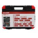 Standardile DIN 3120, ISO 1174 vastav liigend, kuulkinnitusega. Standardile DIN 3120, ISO 1174 vastav nelikantühendus, kuulisoonega. 2C pööratav narre, parema ja vasaku käe suunavahetushoob, vabastusnupp, tihe hammastus, ovaalne pea, kahest materjalist käepide, käesõbralik jõuedastus, padrunitele. 1/4″ nelikant-siseotsaga käepide, ühekomponentne käepide neljakandilise siseotsaga. 1/4″ + 1/2″ padrun, kuuskant, meetermõõdustik, lühike, vastab standardile DIN 3124, ISO 2725. 1/4″ + 1/2″ padrun, kuuskant, meetermõõdustik, pikk, vastab standardile DIN 3124, ISO 2725. 1/2″ süüteküünlapadrun pressitud hoidekummiga. 1/2″ süüteküünlapadrun pressitud hoidekummi ja täiendava kuuskantühendusega, suurus 24. Padrunotsak 1/4″, kuuskantkruvidele, pressitud fosfaatotsaga. Lapikkruvitsa 1/4″ padrunotsak, pressitud fosfaatotsaga. PH-kruvitsa 1/4″ padrunotsak, pressitud fosfaatotsaga. PZ-kruvitsa 1/4″ padrunotsak, pressitud fosfaatotsaga. TX-kruvitsa 1/4″ padrunotsak, pressitud fosfaatotsaga. Padruni pikendus 1/4″ + 1/2″. Liuguriga 1/4″ T-käepide, vastab standardile DIN 3122, ISO 3315. Kardaanliigend 1/4″ + 1/2″, keermega liigend, vastab standardile DIN 3123 (C 12.5). Konverter/liugur 3/8″ x 1/2″ padrunite ja kruvikeeraja padrunotsakute keeramiseks. 1/2″ otsakuadapter, sisenelikandi ja sisekuuskandiga, kõikidele 5/16″ välise kuuskandiga otsakutele ja tööriistadele. 5/16″ otsak, kuuskant, lapik, PH, PZ, TX hoidikule vastavalt standardile DIN ISO 1173 (D 8). L-võtmete komplekt, vastab standardile DIN ISO 2936. Käsitsi kruvide keeramiseks. Kroomvanaadiumteras, kroomitud, satiinmatt. GEDORE punase kujundusega plastkohver. Klambriga kinnitatud tööriistad, metallist hinged/kinniti.