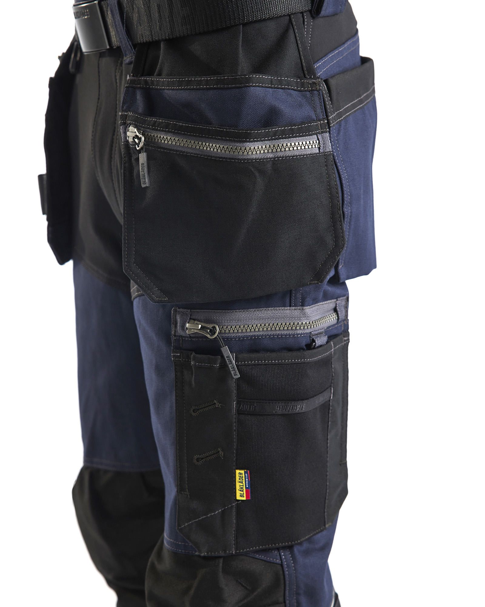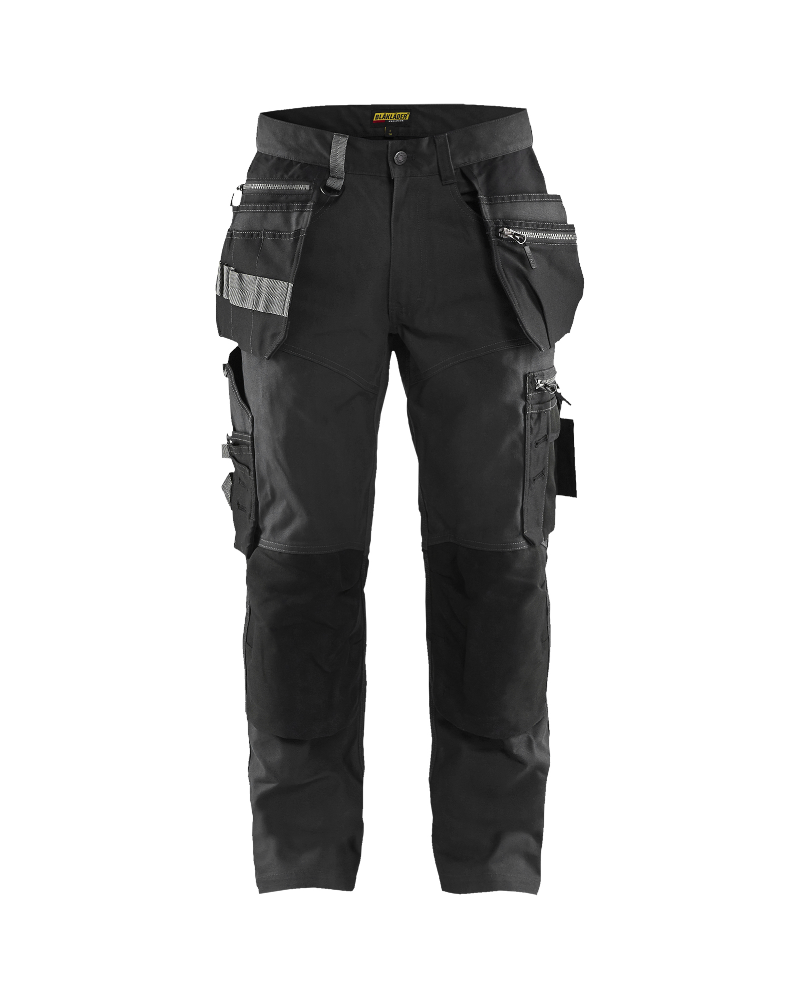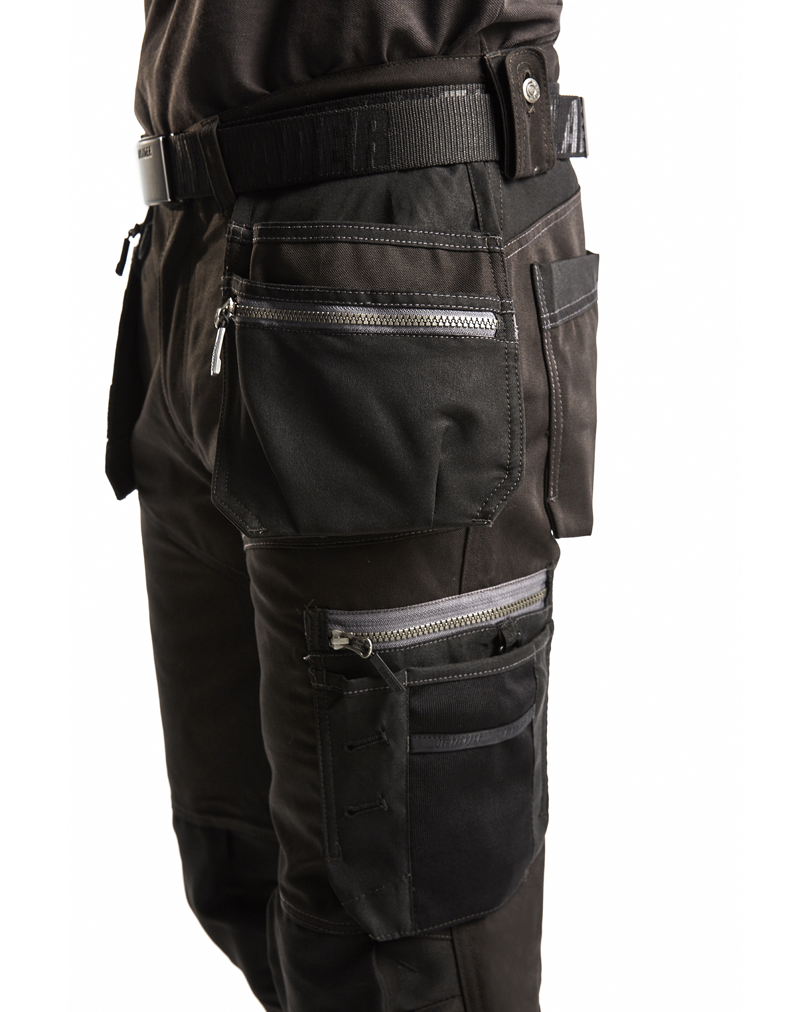 Funktsionaalsed ja mugavad ripptaskutega püksid, milles on kasutatud vastupidavat, samas pehmet ja hingavat canvas-materjali. CORDURA® stretšmaterjalist põlvekaitsmetaskud lisavad mugavust ja vastupidavust. Hulk funktsionaalseid taskuid nagu ripptaskud koos tõmblukuga lisataskutega, kaks lõõtsaga tagataskut, tugevdusega tööriistatasku, pliiatsitasku ja noatasku ning mugav ja elastne mobiilitasku, kuhu mahub enamik telefone. Säärtel mustad helkurdetailid.