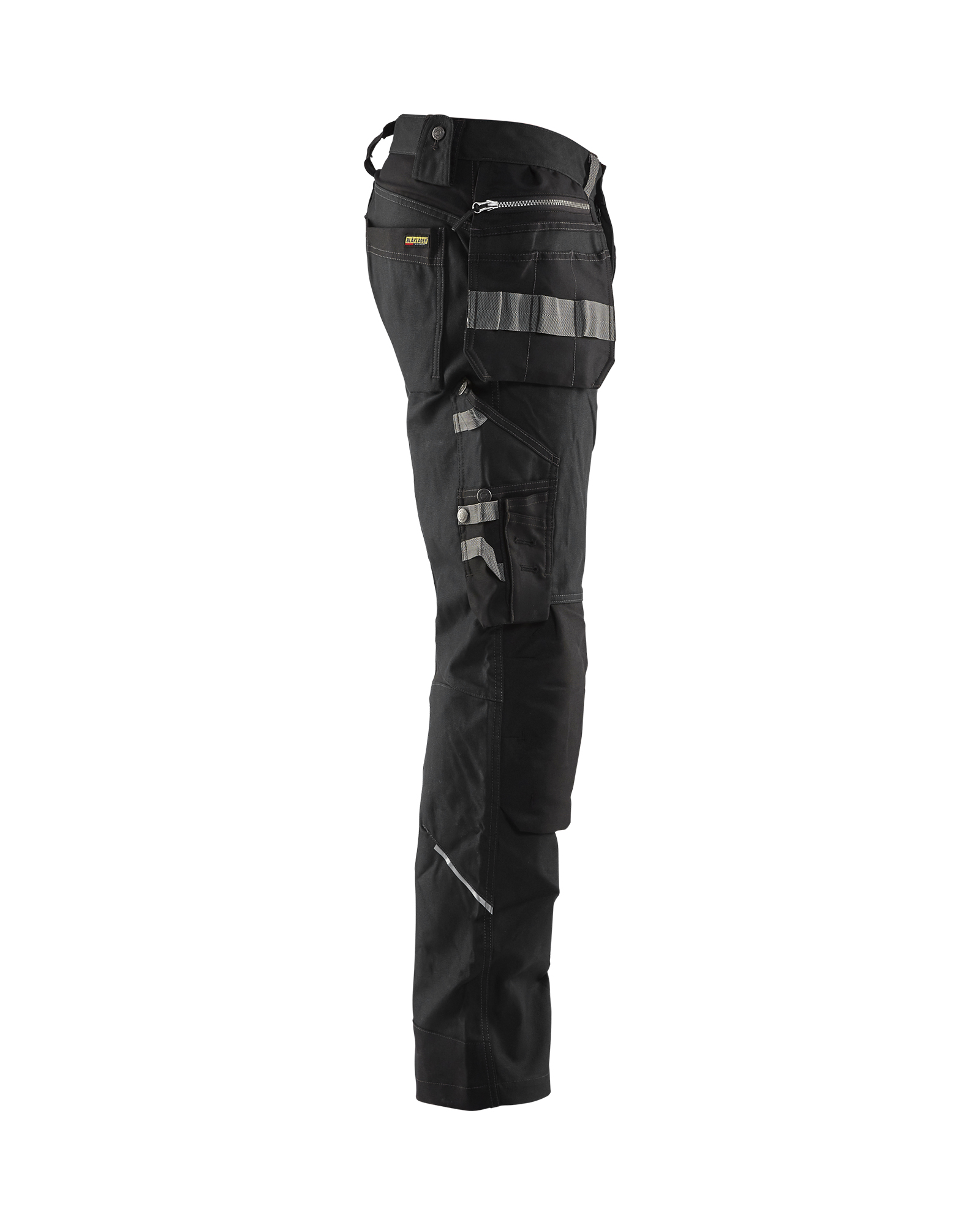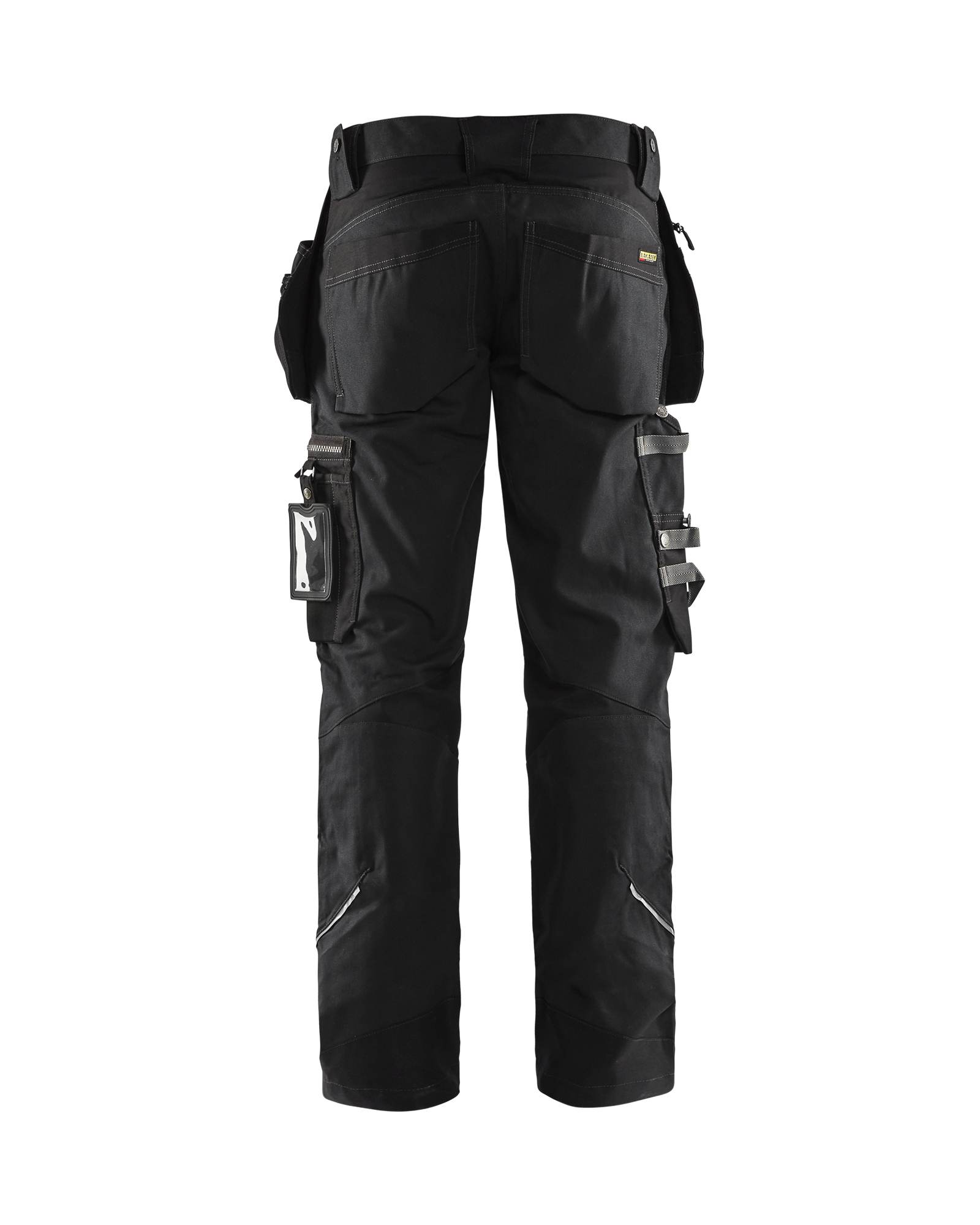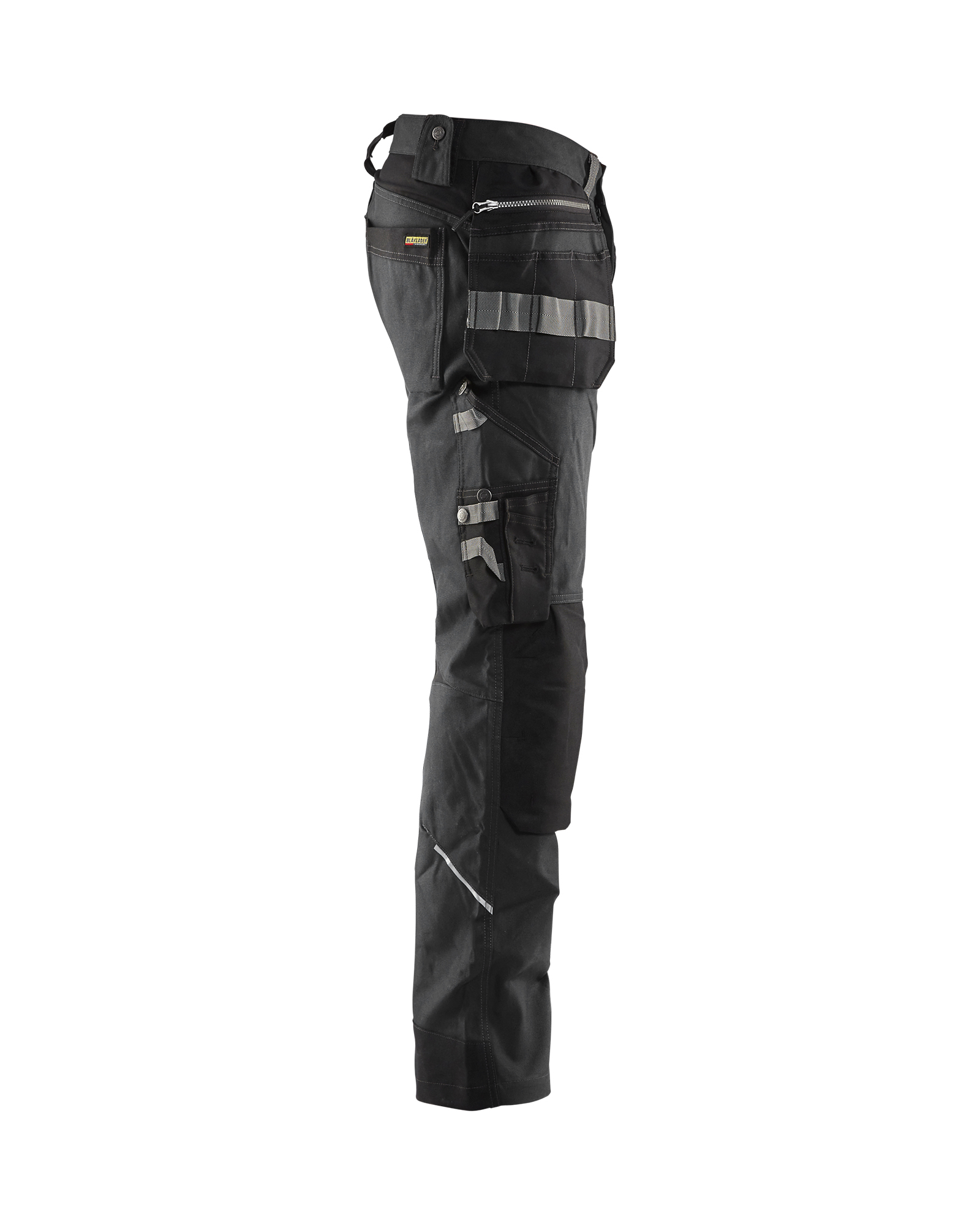 Funktsionaalsed ja mugavad ripptaskutega püksid, milles on kasutatud vastupidavat, samas pehmet ja hingavat canvas-materjali. CORDURA® stretšmaterjalist põlvekaitsmetaskud lisavad mugavust ja vastupidavust. Hulk funktsionaalseid taskuid nagu ripptaskud koos tõmblukuga lisataskutega, kaks lõõtsaga tagataskut, tugevdusega tööriistatasku, pliiatsitasku ja noatasku ning mugav ja elastne mobiilitasku, kuhu mahub enamik telefone. Säärtel mustad helkurdetailid.