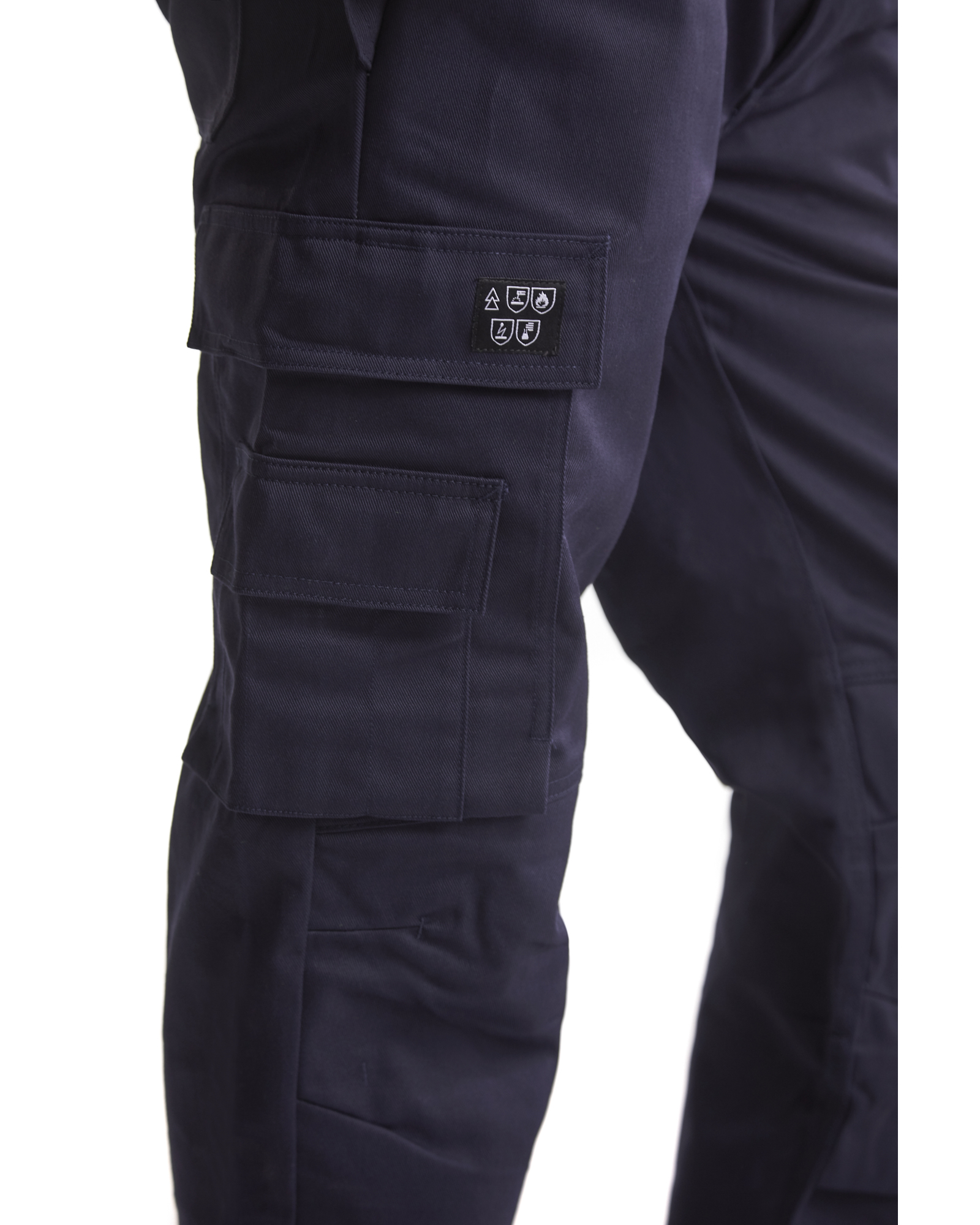 Tuletõkkega püksid, mis on õli-, mustust- ja vetthülgavad. Vastupidavad püksid on varustatud praktiliste ja kasulike klapiga taskutega ning väliste põlvepatjade taskutega. Testitud tööstusliku pesu suhtes. Sertifitseeritud kooskõlas standarditega EN 14404, EN 1149-5, EN ISO 11611, EN 13034, EN ISO 11612, IEC 61482-2. ATPV: 16,0 cal/cm².