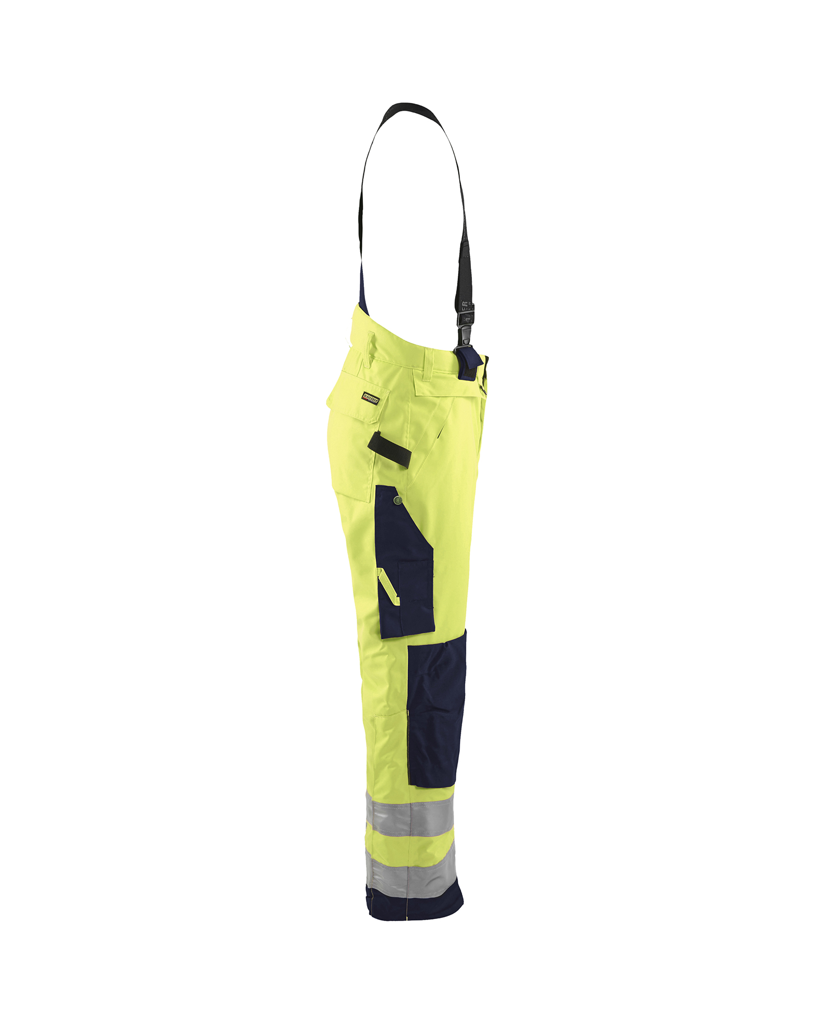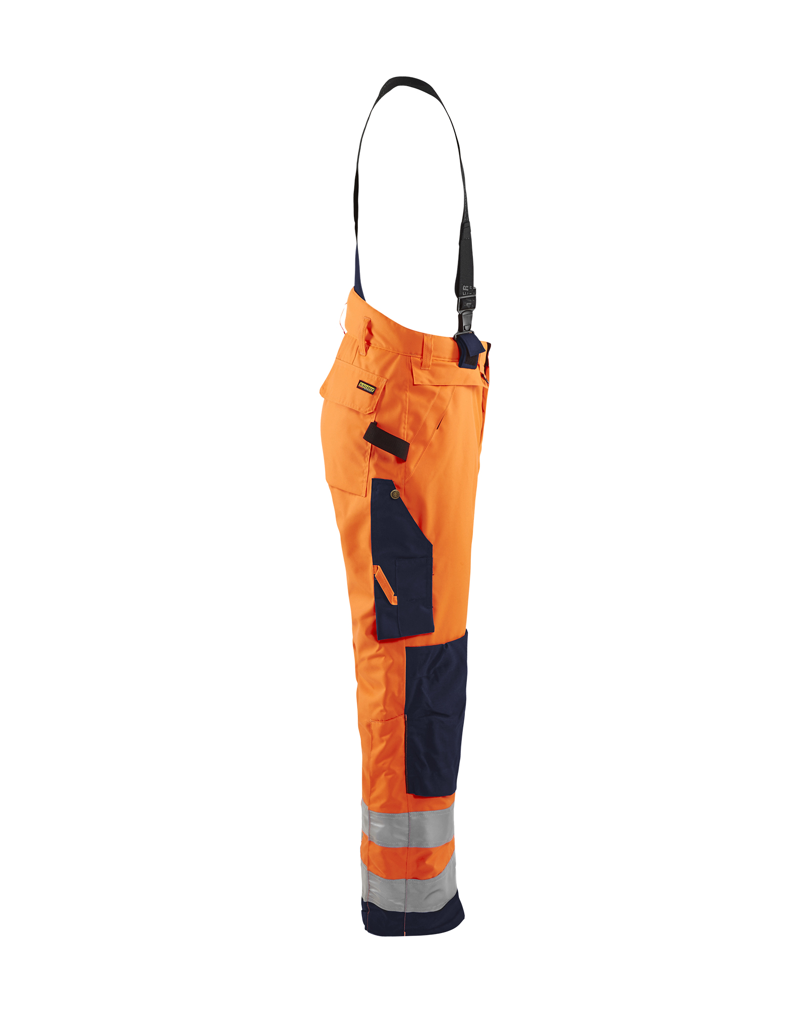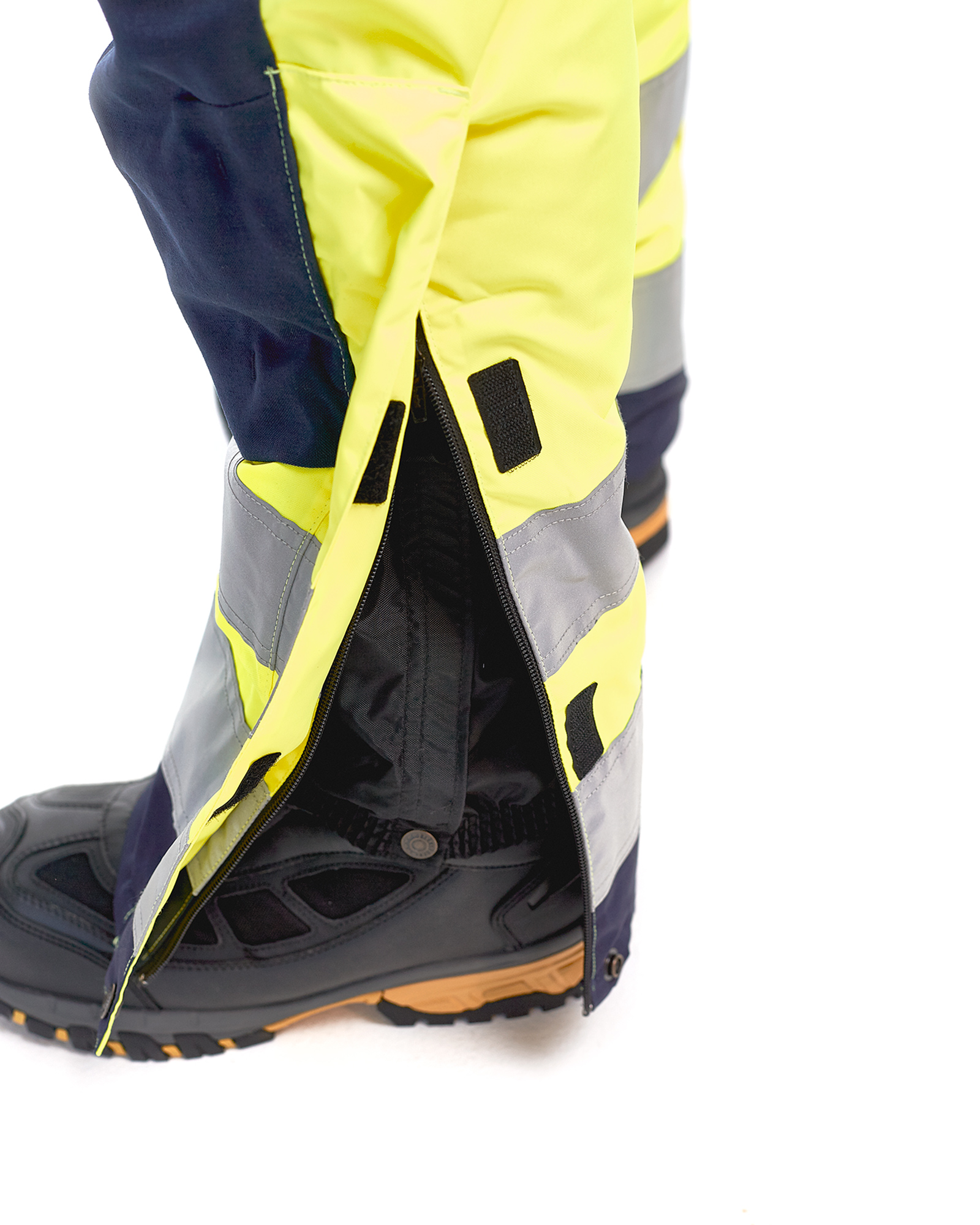 Voodriga talvepüksid kahest materjalist – vastupidav ja märgumatu nailon 1900 ning hingav, tuule- ja veekindel materjal 1977 teibitud õmblustega. Fliisvoodriga esitaskud, lõõtsaga tagataskud, klapiga reietaskud ning mõõdulinditasku. CORDURA® materjalist tugevdustega põlvekaitsmetaskud, mille saab sulgeda alaservast takjaribaga nii, et lumi ei pääse neisse sisse. Lumekaitsmed sääreotsas ja eemaldatavad traksid. Tõstetud seljaosa. NB! Ripptaskud 2183 on saadaval eraldi. Sertifitseeritud EN ISO 20471 klass 2, ja EN 342 kohaselt. Tooted 1885-1977 sertifitseeritud ka EN 343 kohaselt. Värvus 5599 punane/must 120,00€.