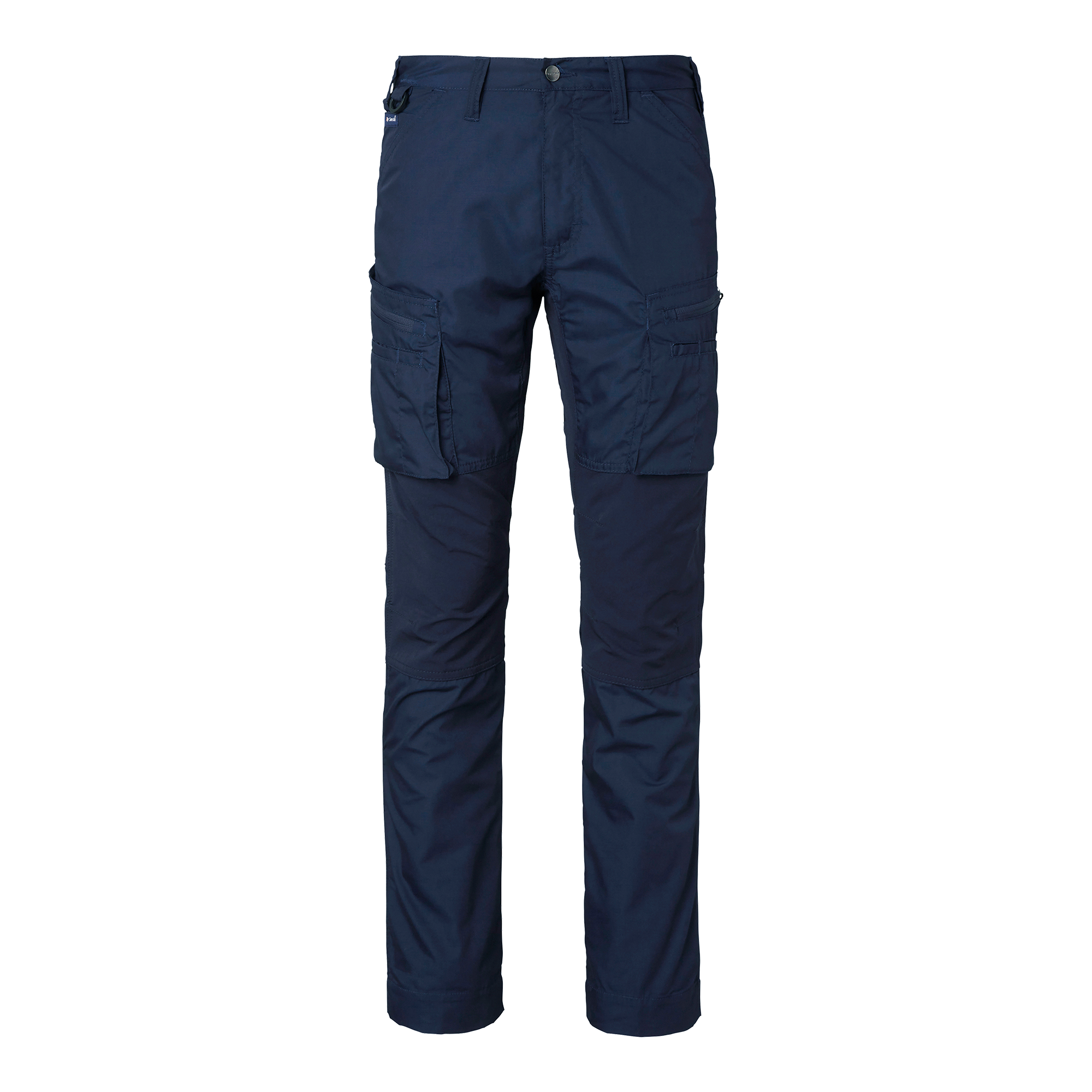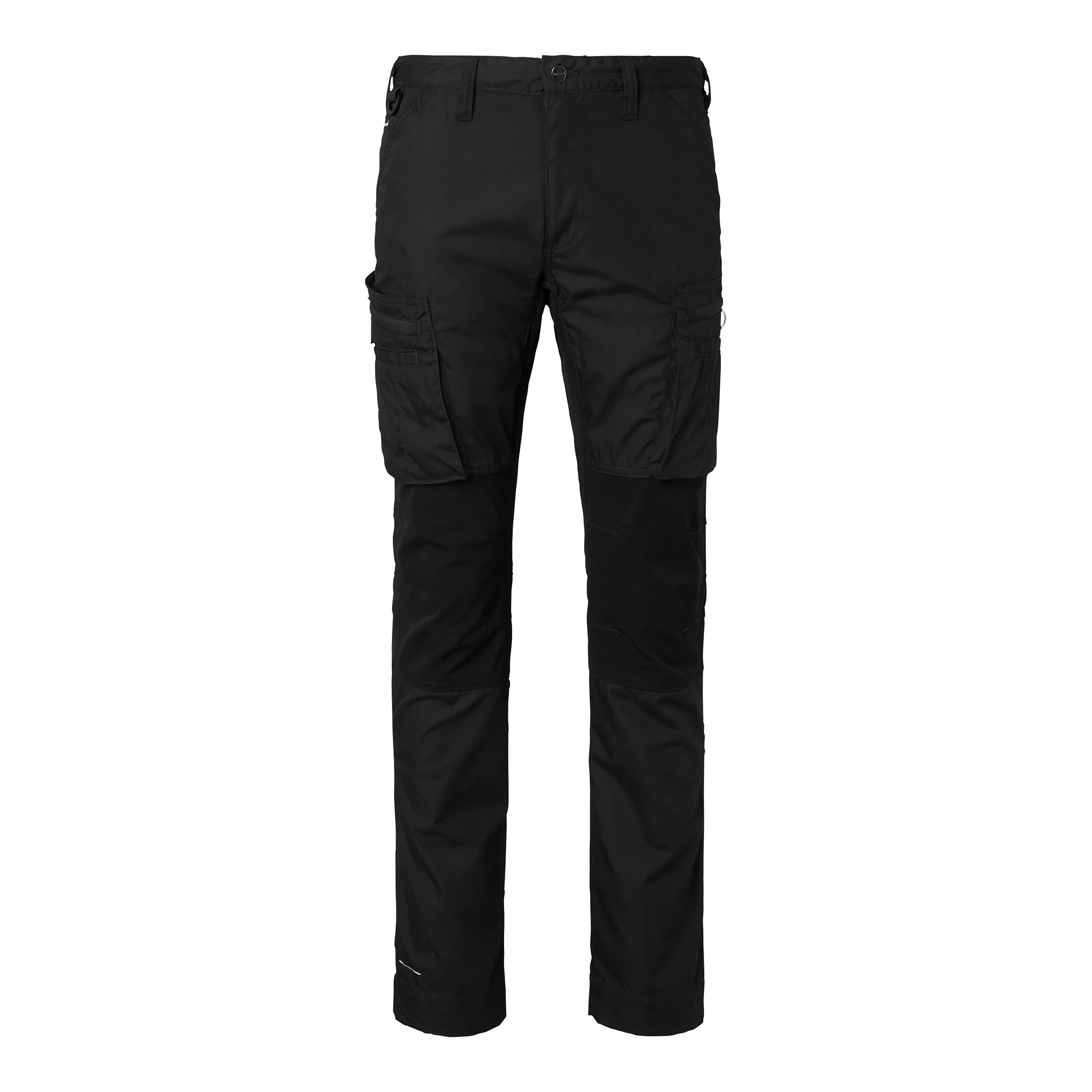 Stretch-fabric work trousers in a modern cut with articulated knees. Two back pockets. Two front pockets with an accessory compartment. Two bellows-style leg pockets with zips and space for a knife and pens. The right leg pocket has a roomy accessory compartment and a phone compartment. D ring. The legs can be lengthened by 5 cm. Stretch panels in select areas for optimal range of motion. Nylon/spandex stretch panels in the seat, crotch and knees. Other areas are made from a mechanical stretch fabric. Adjustable length.