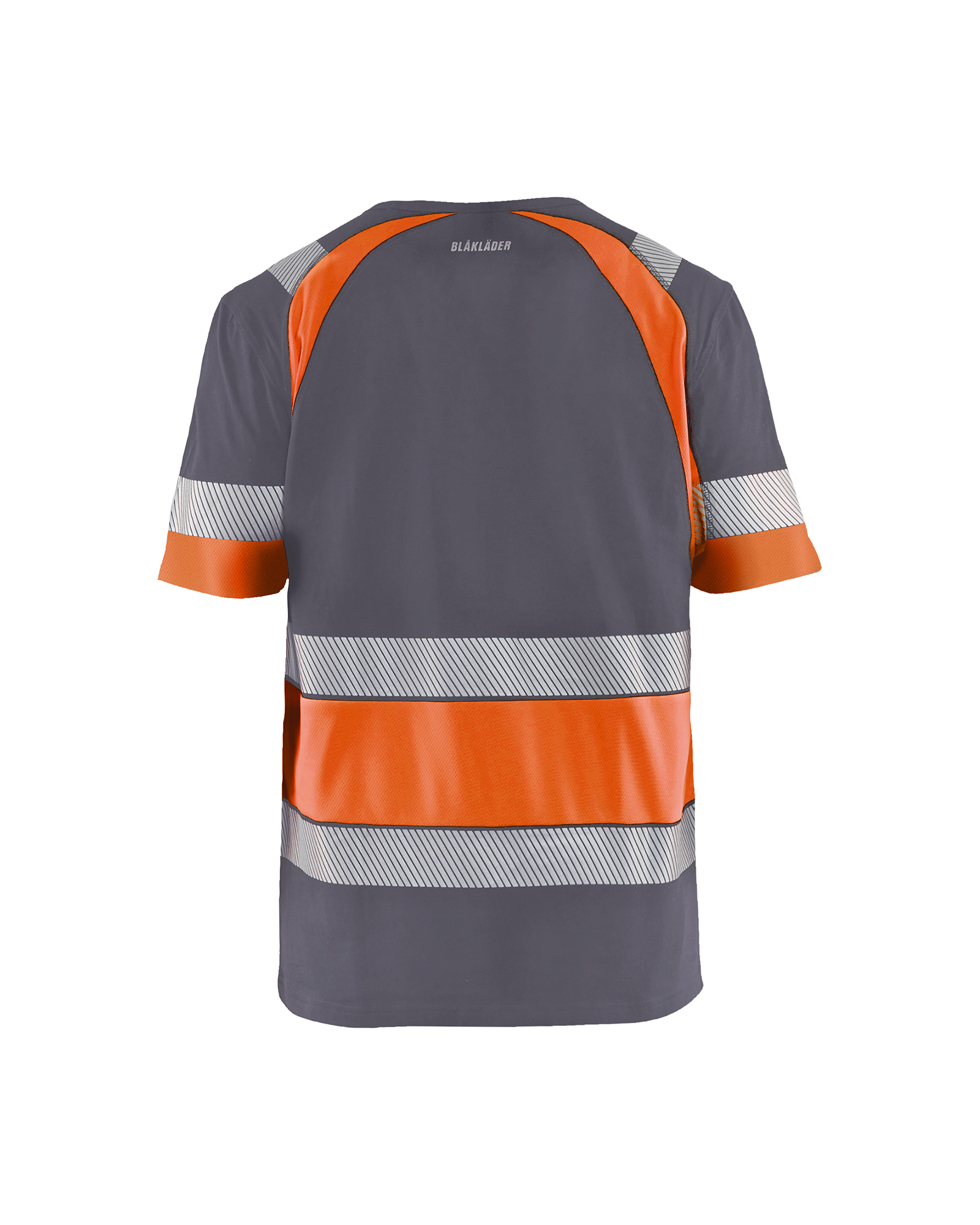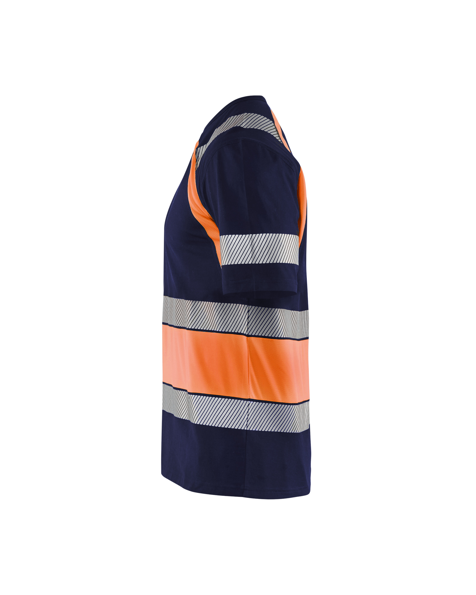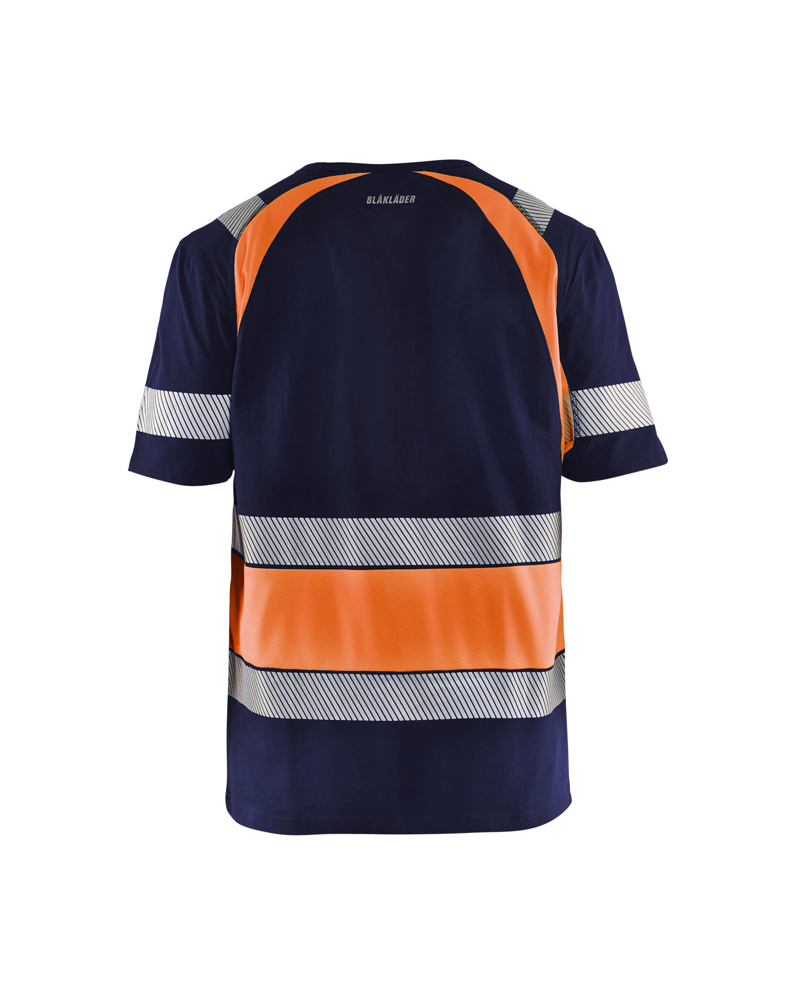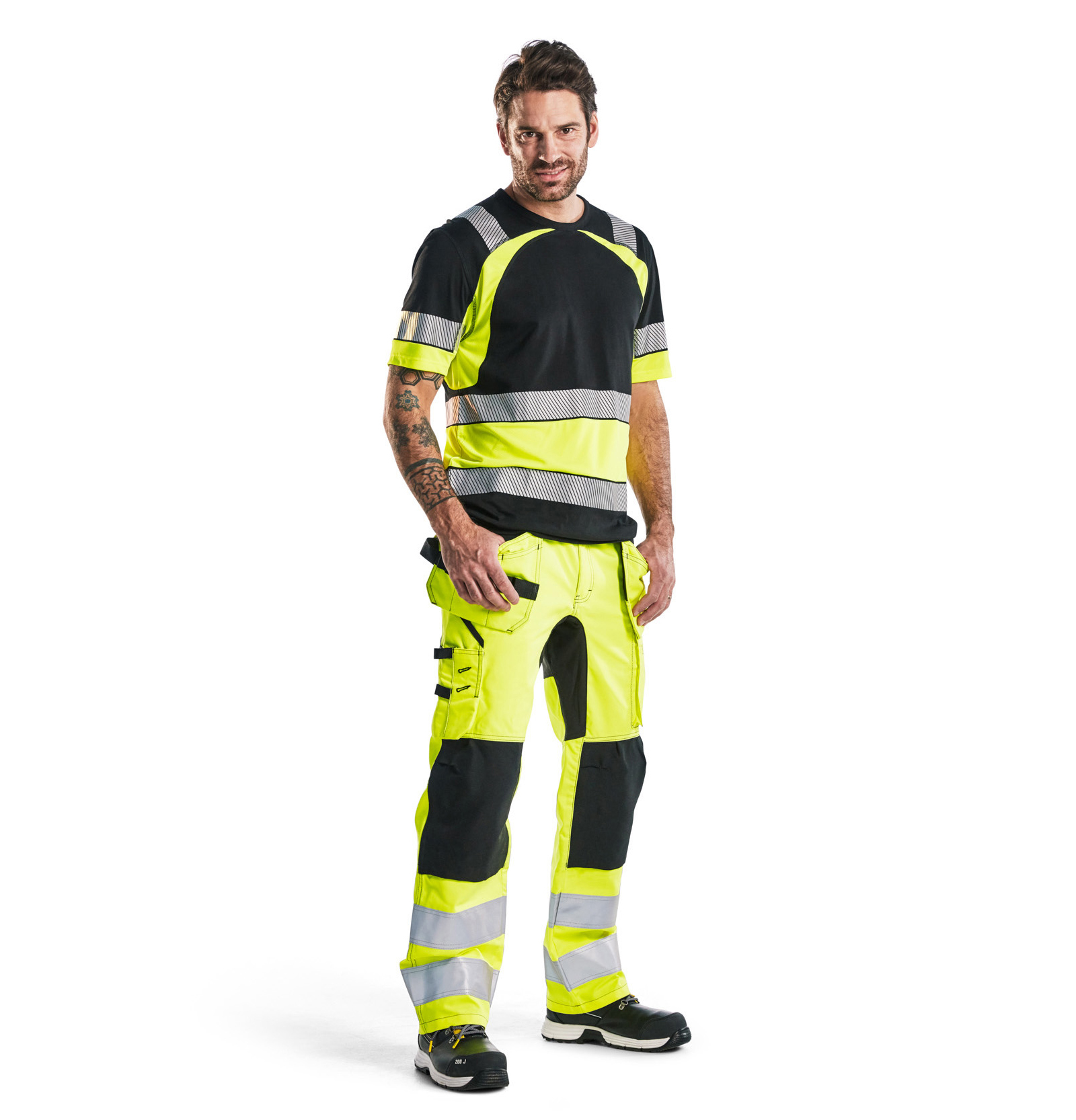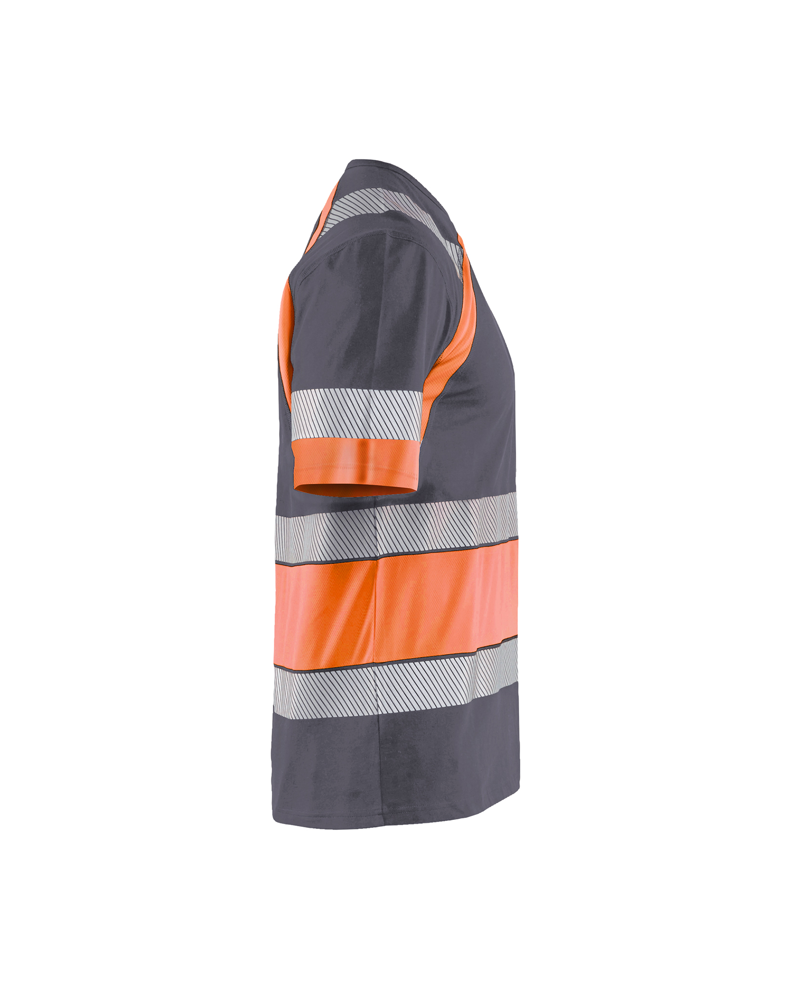Kaasaegne, pehme ja mugav puuvillane T-särk. Hea niiskust eemaldav Hi-Vis-kangas. Ümar kaelus, tugevdatud kaelaõmblusega. Segmenteeritud helkurriba toetab ventilatsiooni ja tagab tänu venivusele parema liikuvuse. Kampsuni tume osa koosneb 100% puuvillast ja kõrge nähtavusega osa 100% polüestrist. Sertifitseeritud vastavalt standardile EN ISO 20471, 1. klass.