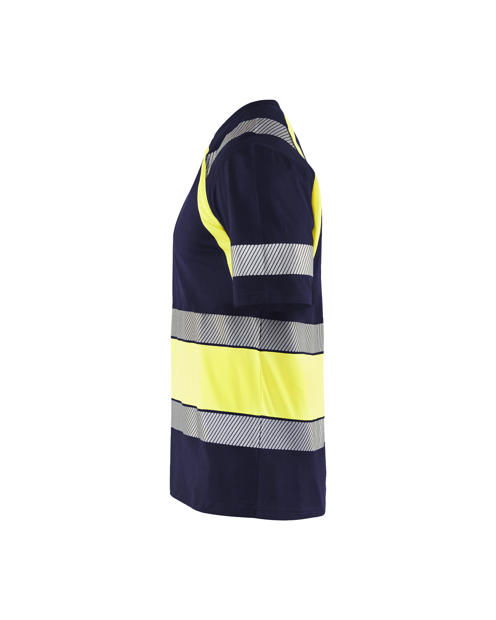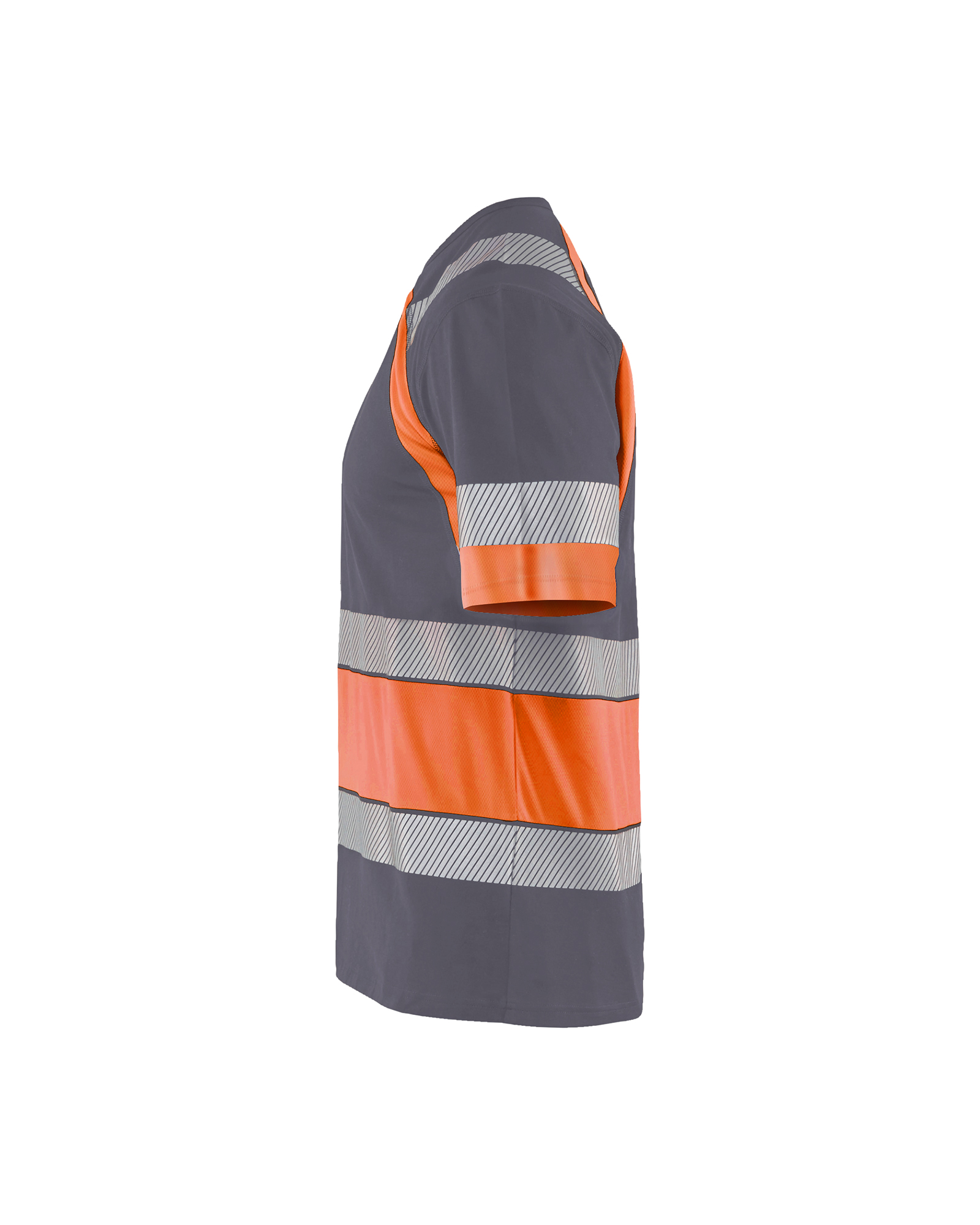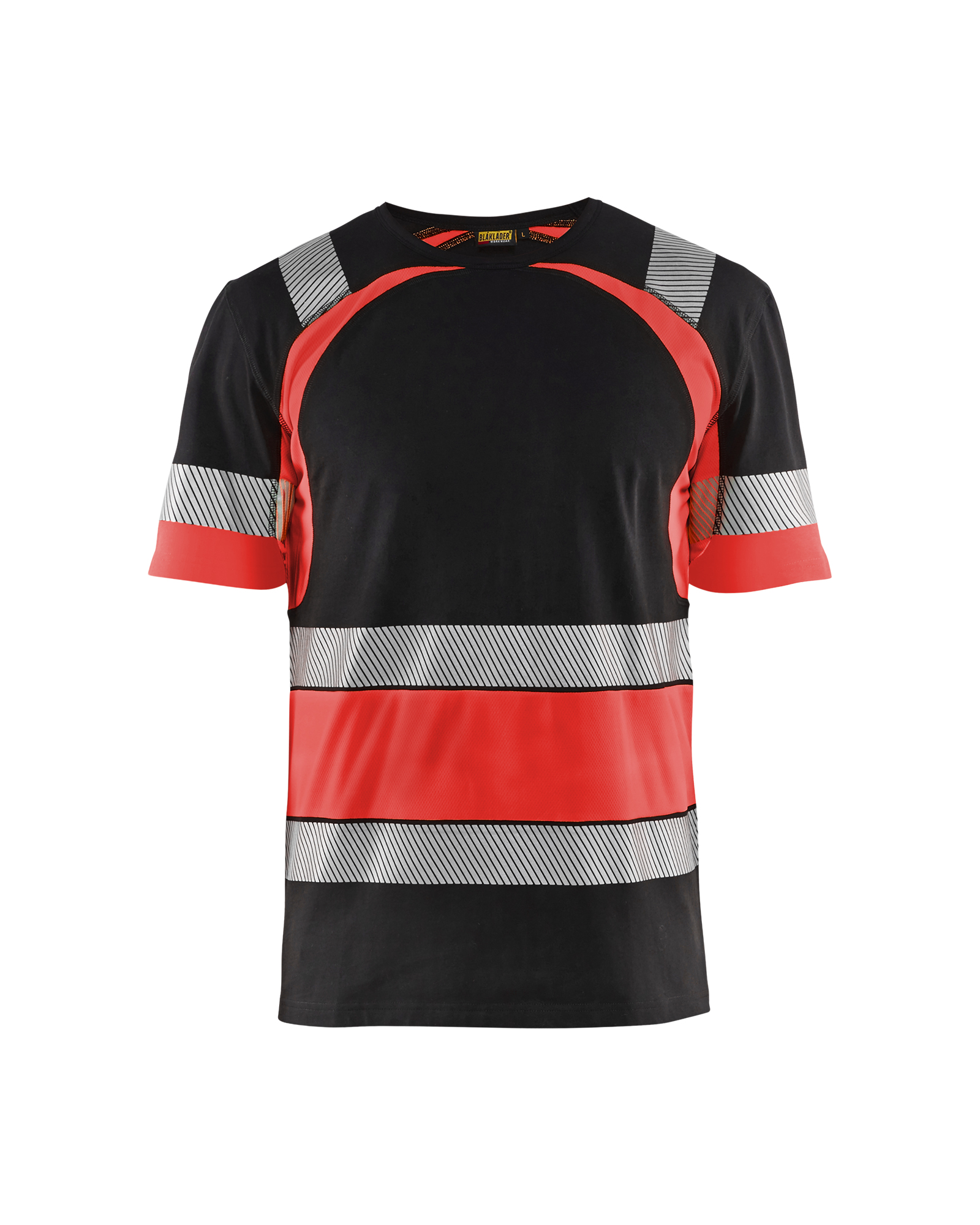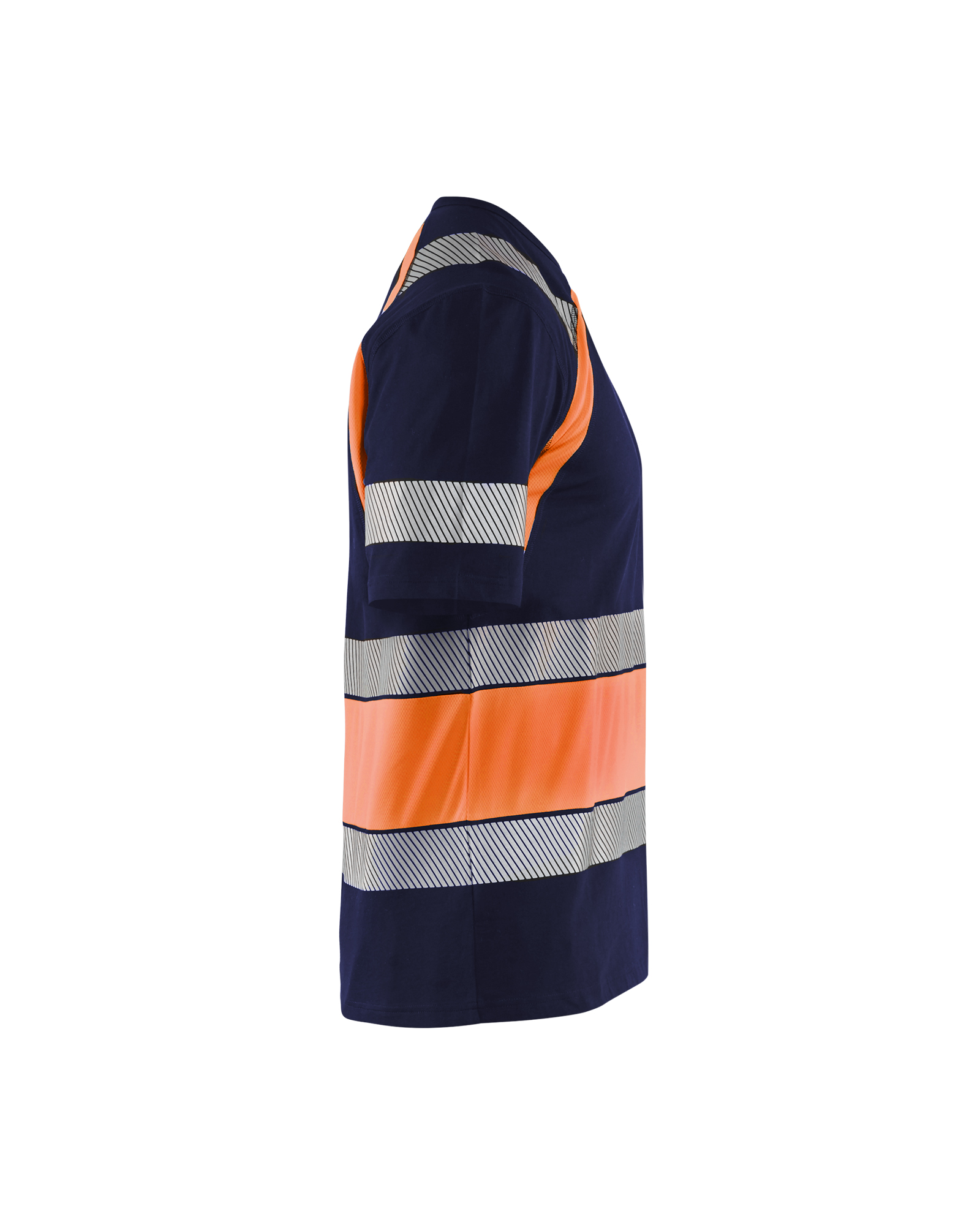 Kaasaegne, pehme ja mugav puuvillane T-särk. Hea niiskust eemaldav Hi-Vis-kangas. Ümar kaelus, tugevdatud kaelaõmblusega. Segmenteeritud helkurriba toetab ventilatsiooni ja tagab tänu venivusele parema liikuvuse. Kampsuni tume osa koosneb 100% puuvillast ja kõrge nähtavusega osa 100% polüestrist. Sertifitseeritud vastavalt standardile EN ISO 20471, 1. klass.