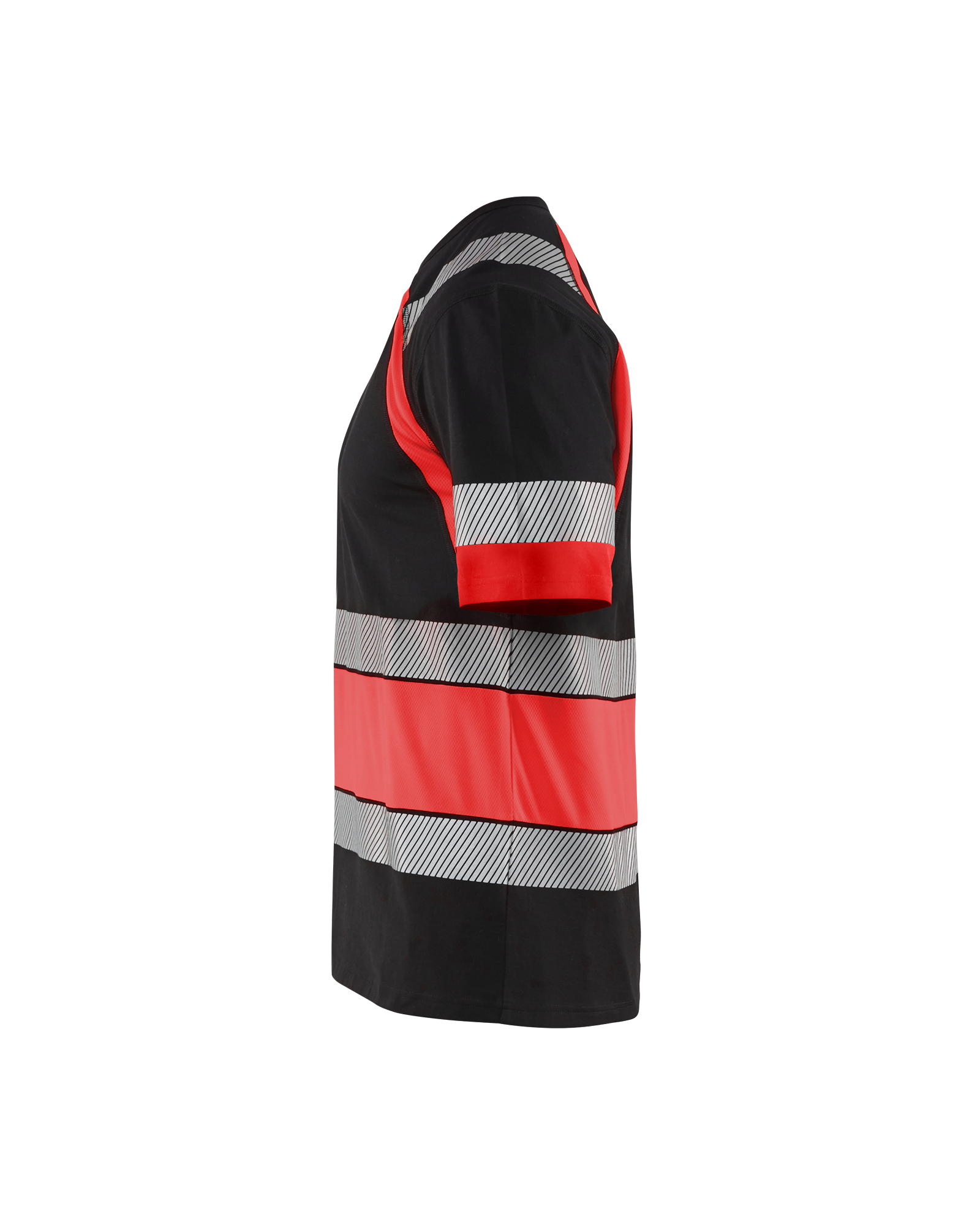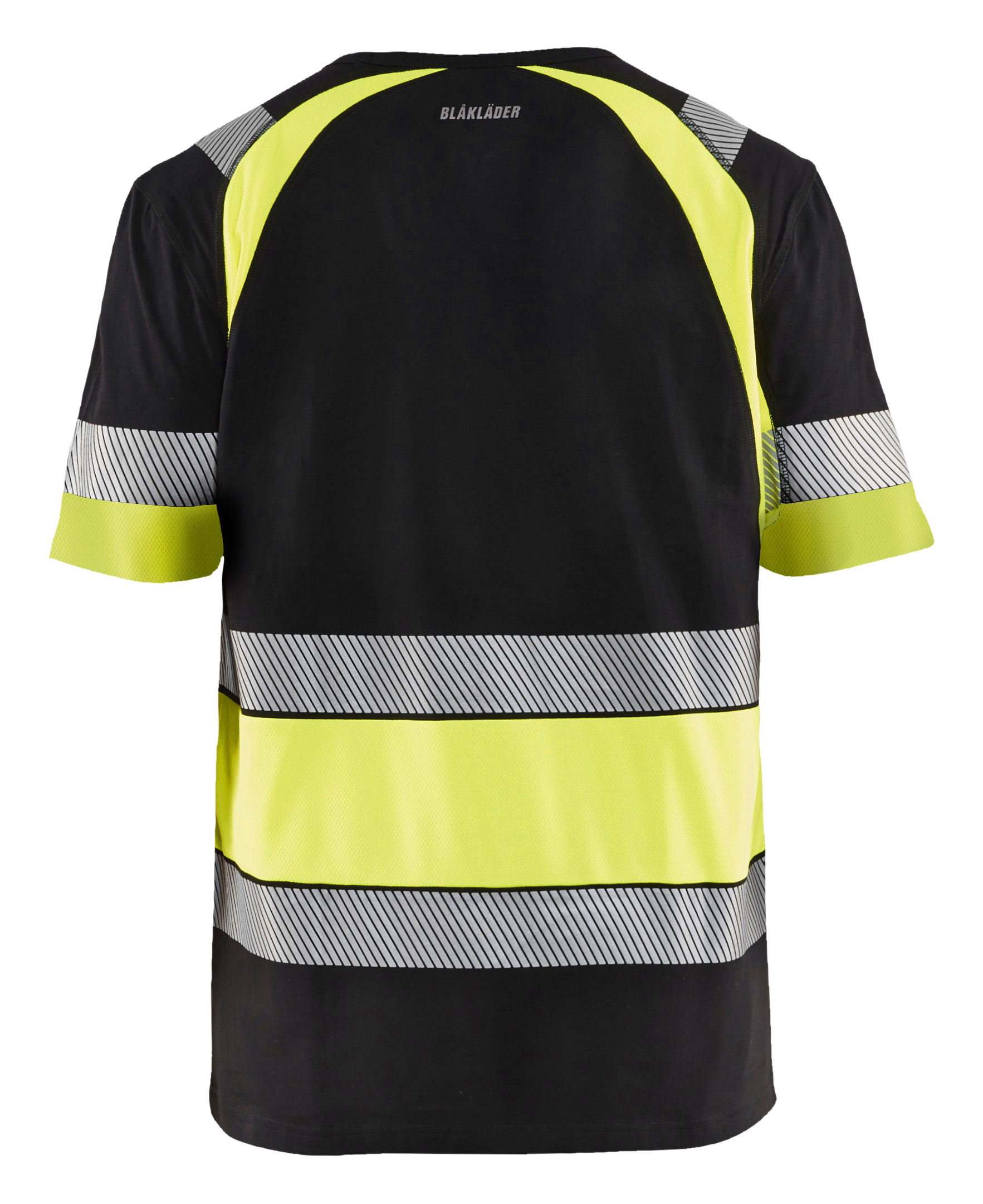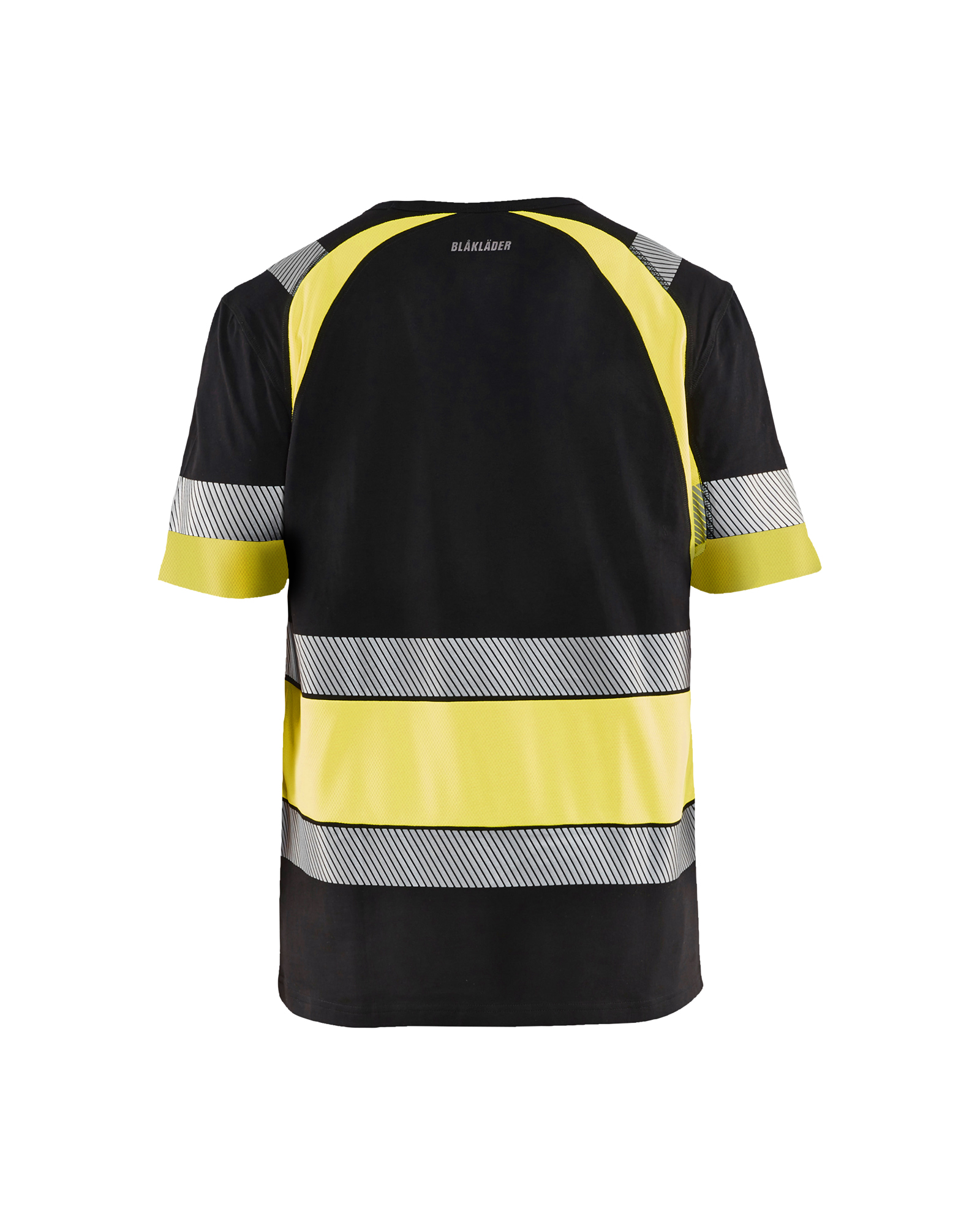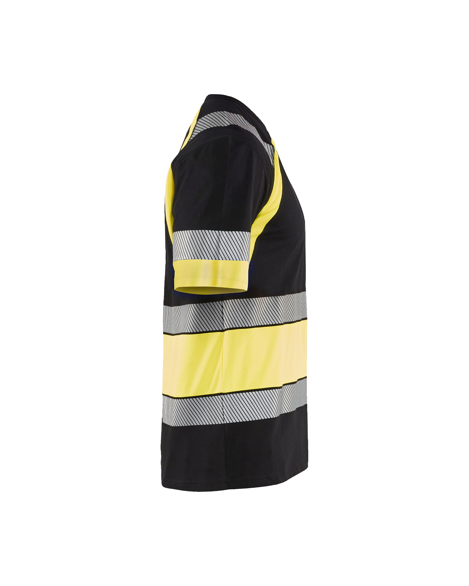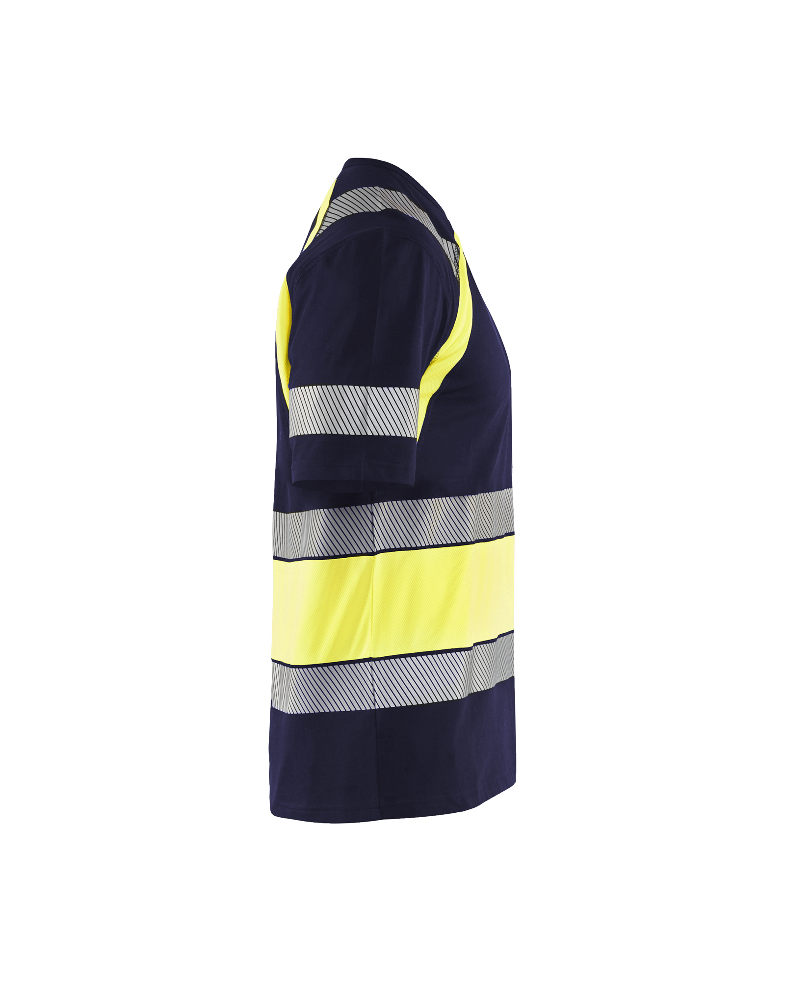 Kaasaegne, pehme ja mugav puuvillane T-särk. Hea niiskust eemaldav Hi-Vis-kangas. Ümar kaelus, tugevdatud kaelaõmblusega. Segmenteeritud helkurriba toetab ventilatsiooni ja tagab tänu venivusele parema liikuvuse. Kampsuni tume osa koosneb 100% puuvillast ja kõrge nähtavusega osa 100% polüestrist. Sertifitseeritud vastavalt standardile EN ISO 20471, 1. klass.