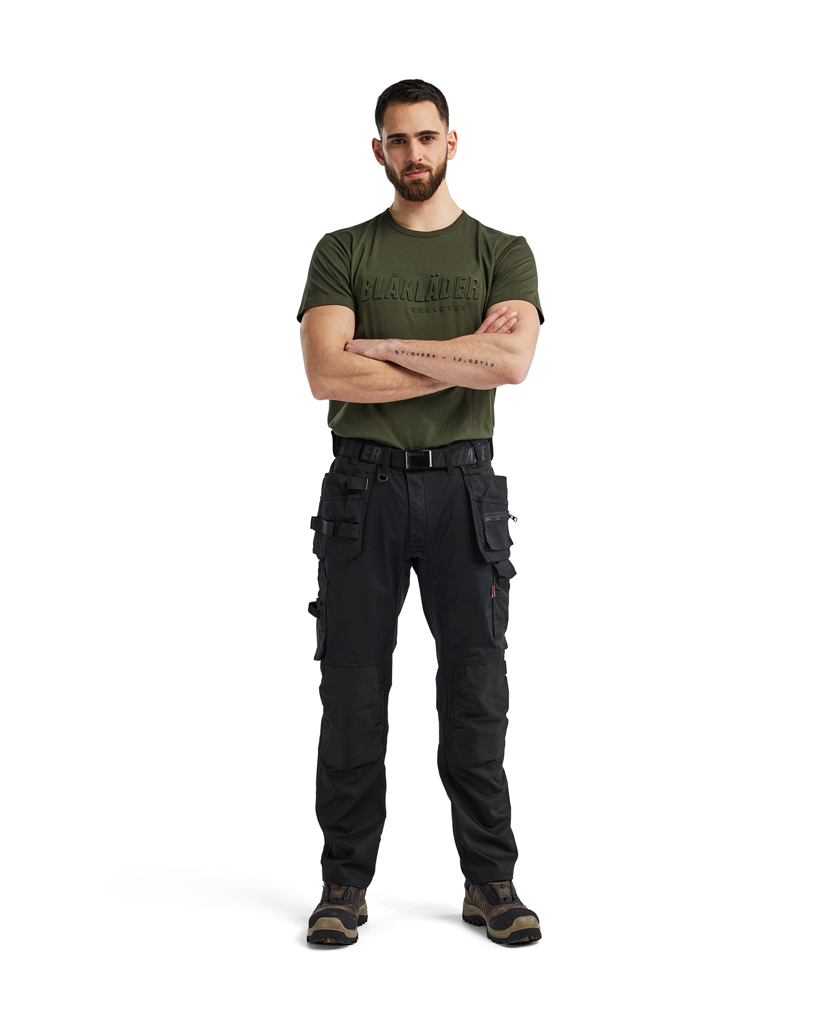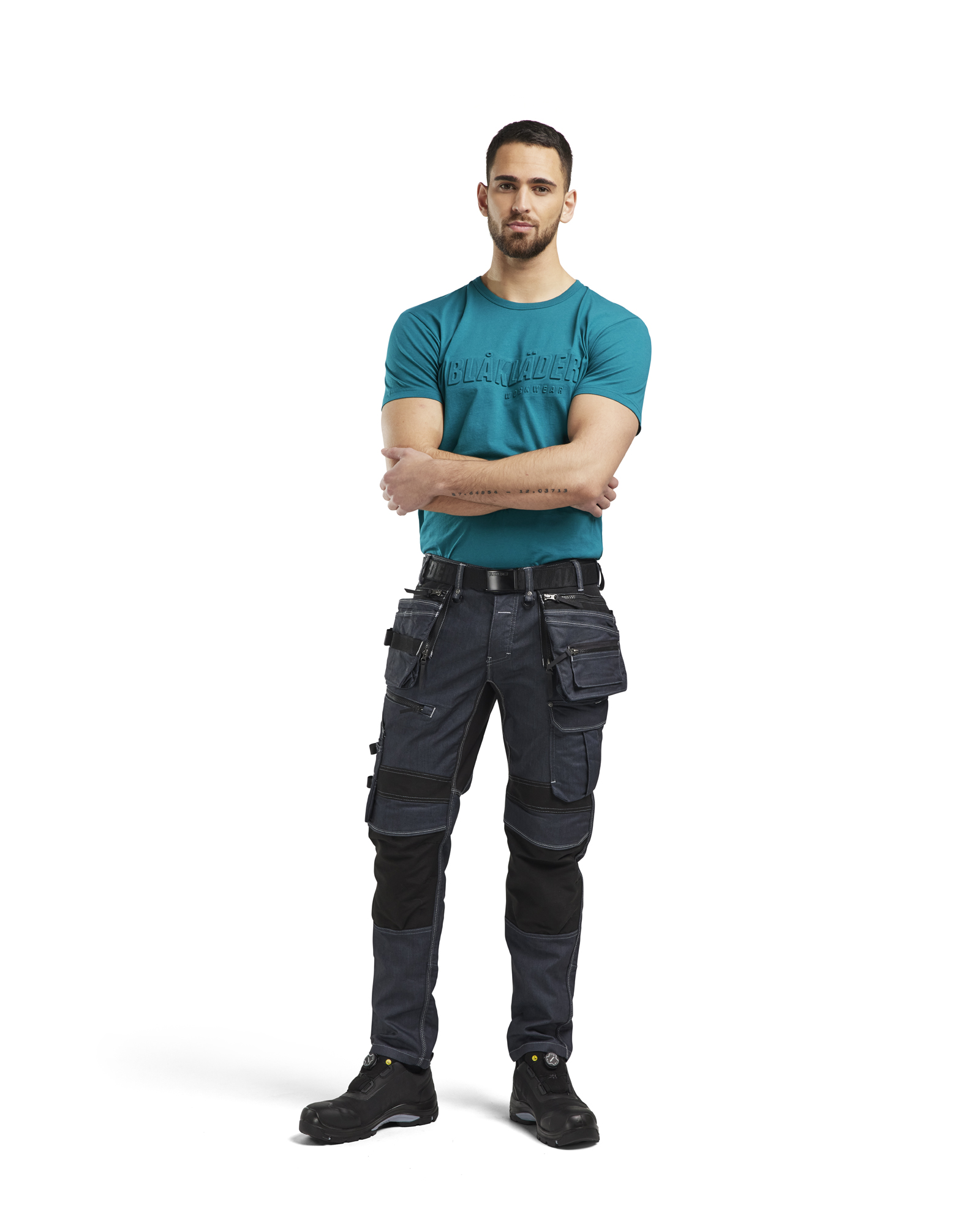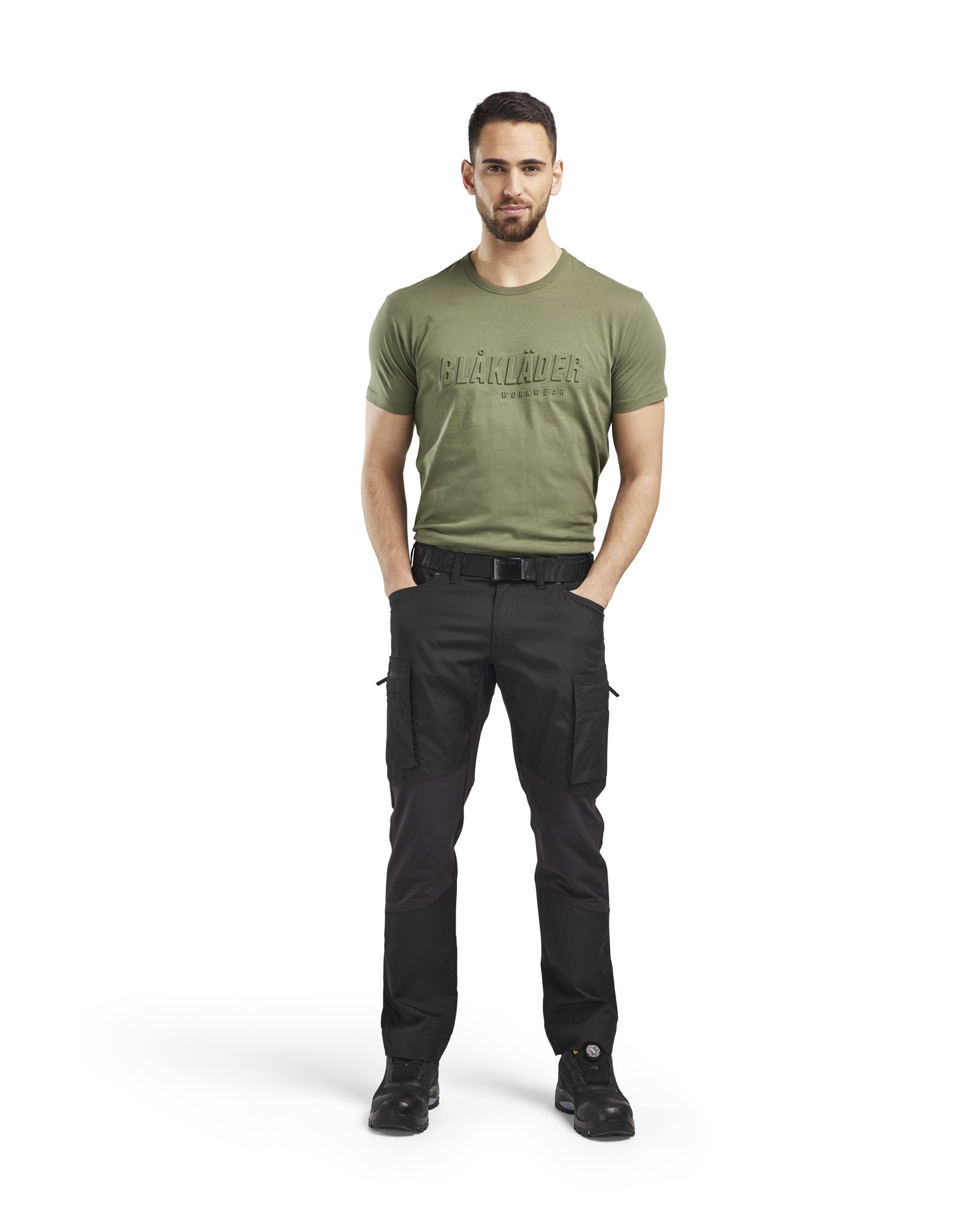 Stiilne puuvillast T-särk ilusa 3D kirjaga „Blåkläder“ rinnal. Sobib suurepäraselt nii tööl kui vabal ajal kandmiseks ning näitab teie esmaklassilist maitset tööriiete osas.