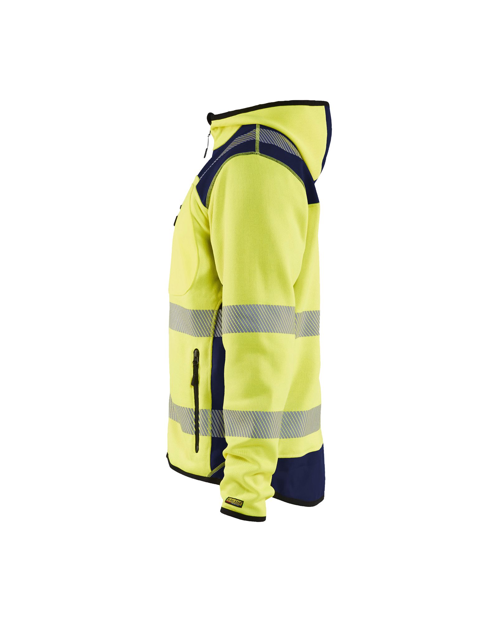 Kõrgnähtavast materjalist valmistatud kootud kapuutsjakk, millel on atraktiivne disain ja mugavuse tagav kvaliteet. Katkendhelkur hea hingavuse ja elastsuse tagamiseks. Jakil on tõmblukud ja suurema vastupidavuse nimel on see õlgade, käiste ja seljaosas tugevdatud softshell-kangaga. See jakk annab õige tunde, olgu töö juures või mujal. Sertifitseeritud vastavalt standardile EN ISO 20471, klass 2.