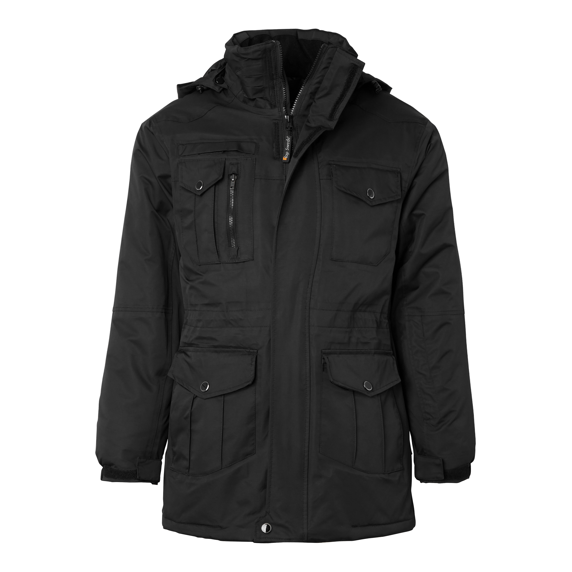 Wind and waterproof parka with taped seams and good ventilation. Quilt-lined. Two front pockets with flaps and two front pockets with zips. Two chest pockets, one with a flap and one with a zip and a phone compartment. Detachable ID-card pocket. Map pocket. Two inner pockets with zips. Detachable lined hood. Sleeve pocket with a zip. Adjustable cuffs. Drawcord at the waist. Adjustable hem. Cuff with a thumb hole. EN 342. EN 343. Waterproof rating 10,000 mm, breathability rating 5,000 g/m². OEKO-TEX