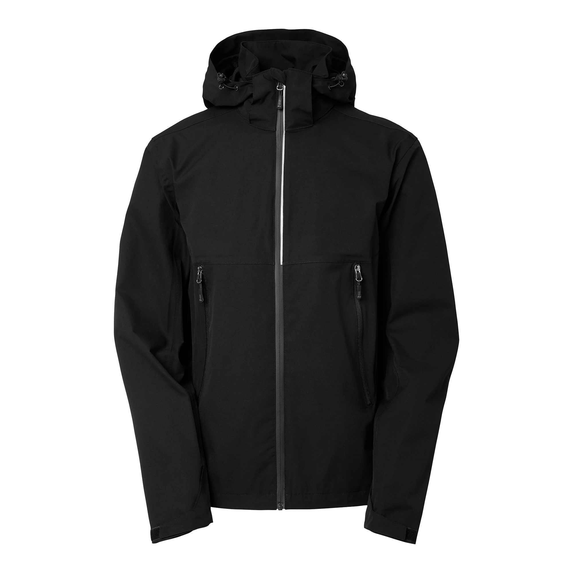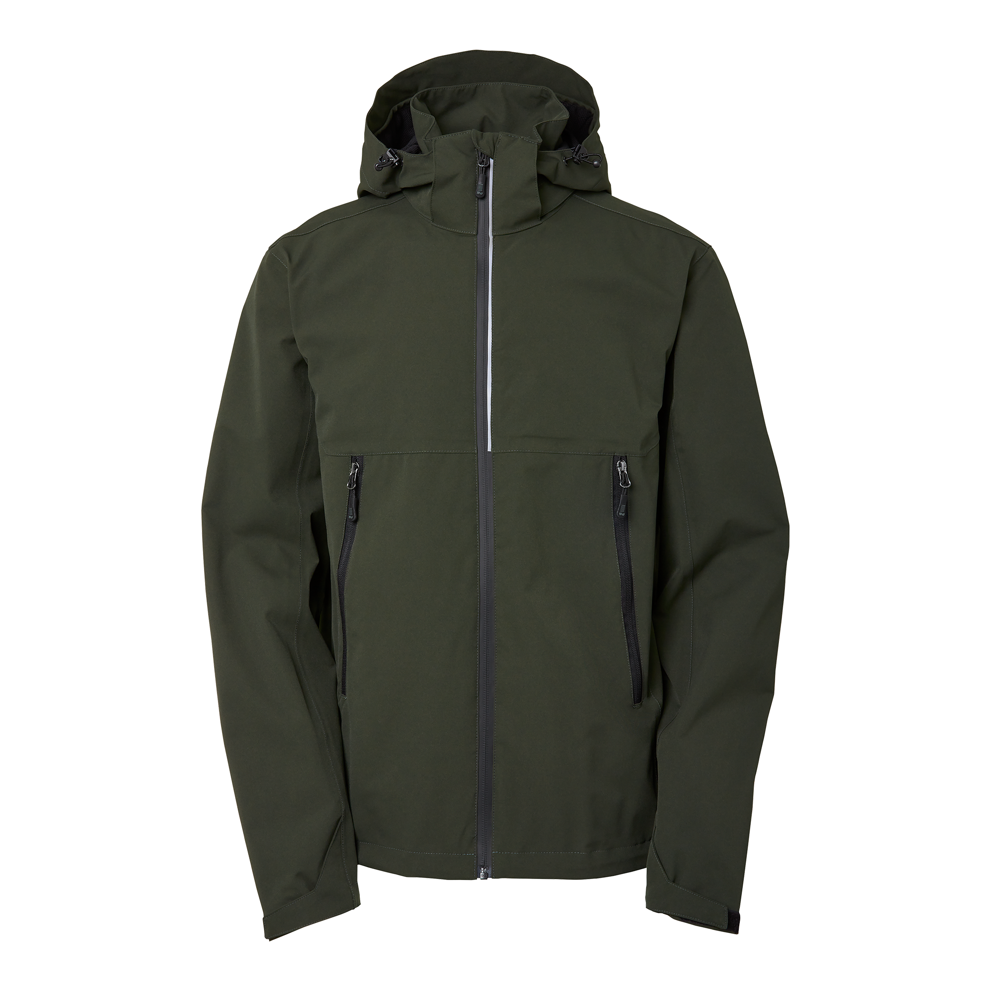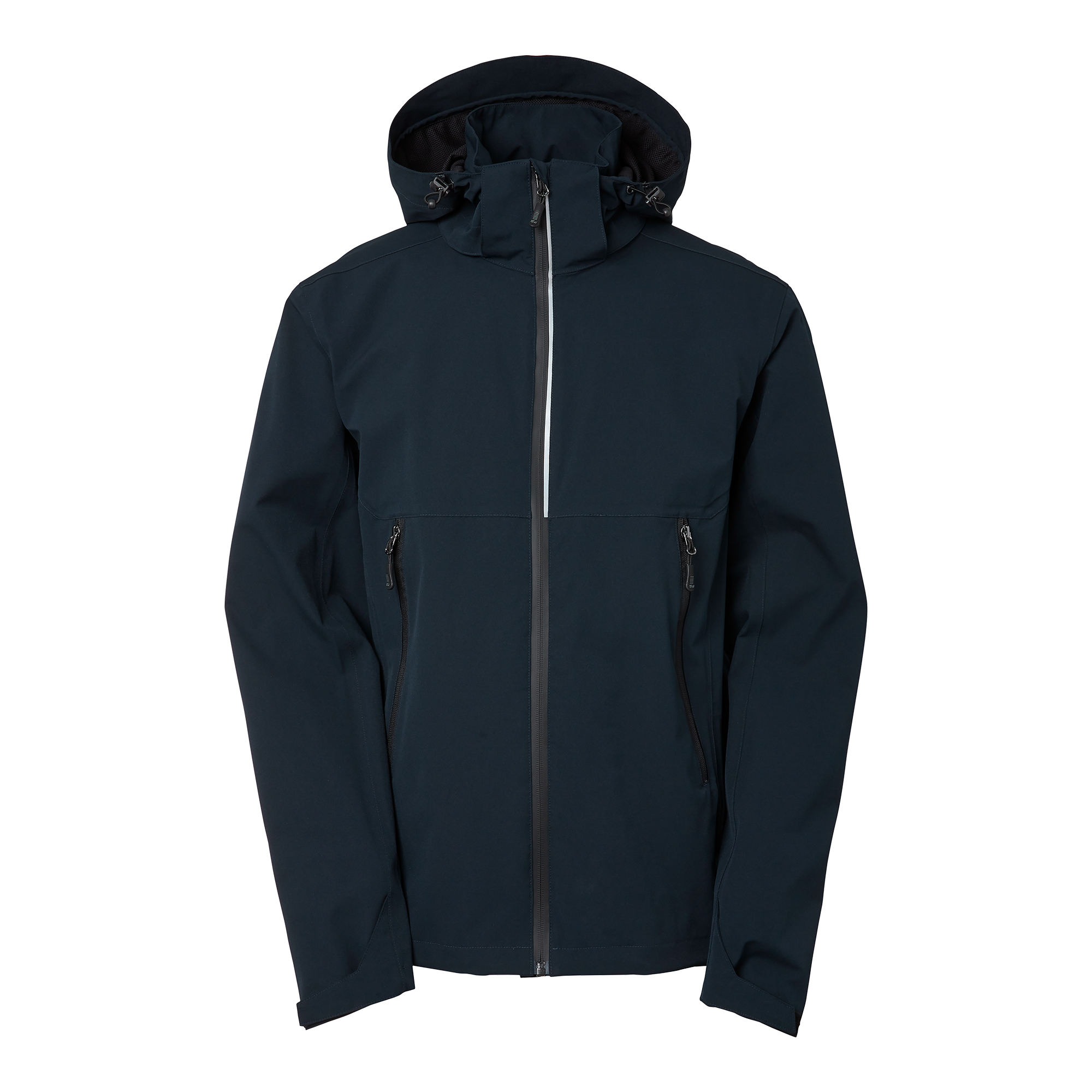 Wind and waterproof shell jacket with taped seams. Waterproof zipper in front with a practical reflective detail. This jacket is soft and supple, in a mechanical stretch fabric that makes the garment very comfortable to wear. The lining is a combination of polyester mesh and smooth polyester. Detachable hood with zipper and snap fasteners. Elastic drawstrings with stoppers on the hood and at the hem. Flap with touch fastener for adjusting the cuffs. Two spacious zippered side pockets and one zippered inside pocket.